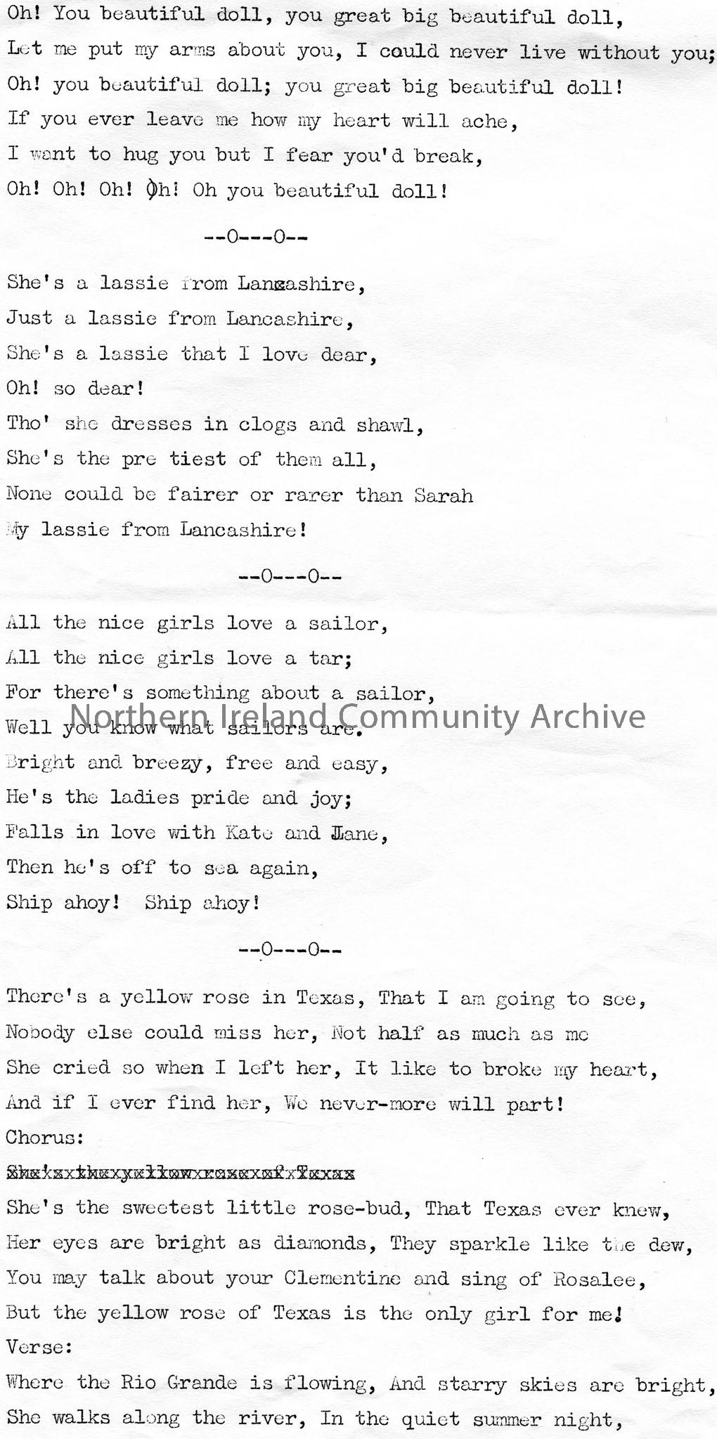 Page 3 of 4 of typed verses from songs titled, ‘Community Singing’.