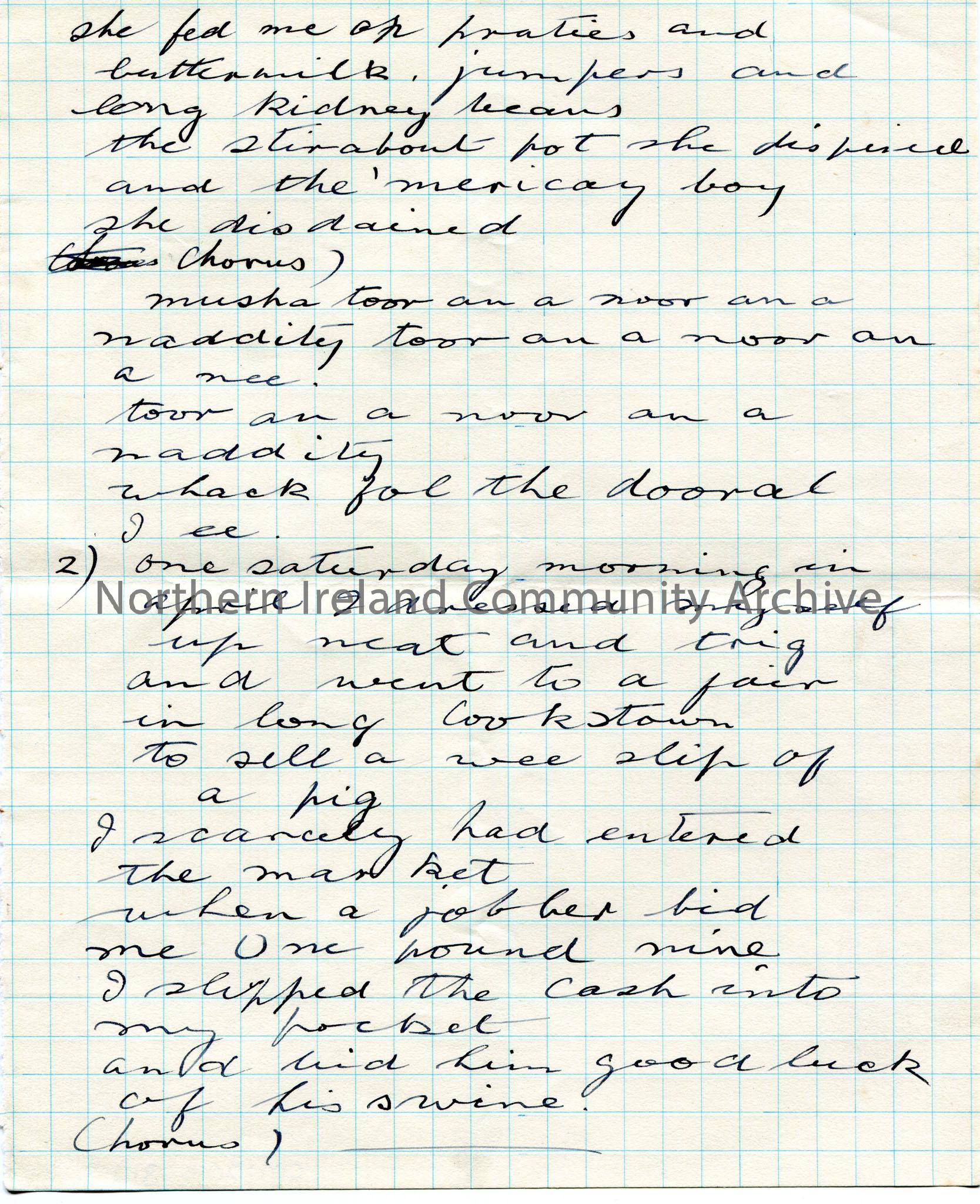 Page 3 of 5. Handwritten words to songs. ‘The Craggan White Hare’ four verses. Second song about Eddie McGurk, five verses.