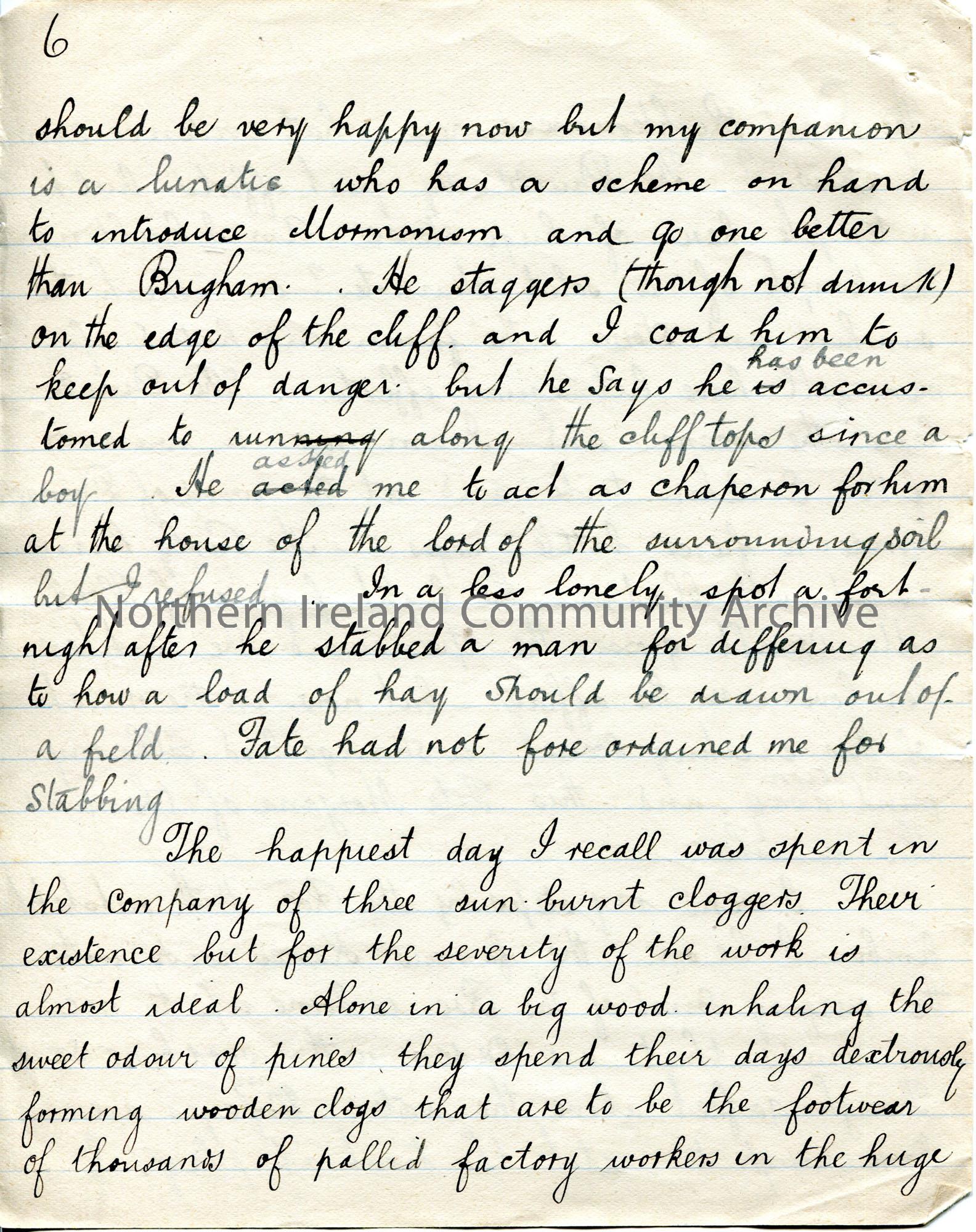 Page 3 of 6. Handwritten essay by Sam Henry titled, ‘An Idle Springtime’. Re nature and walking amongst it. Refer to this as the ‘art of loafing’. Men… – scan026f