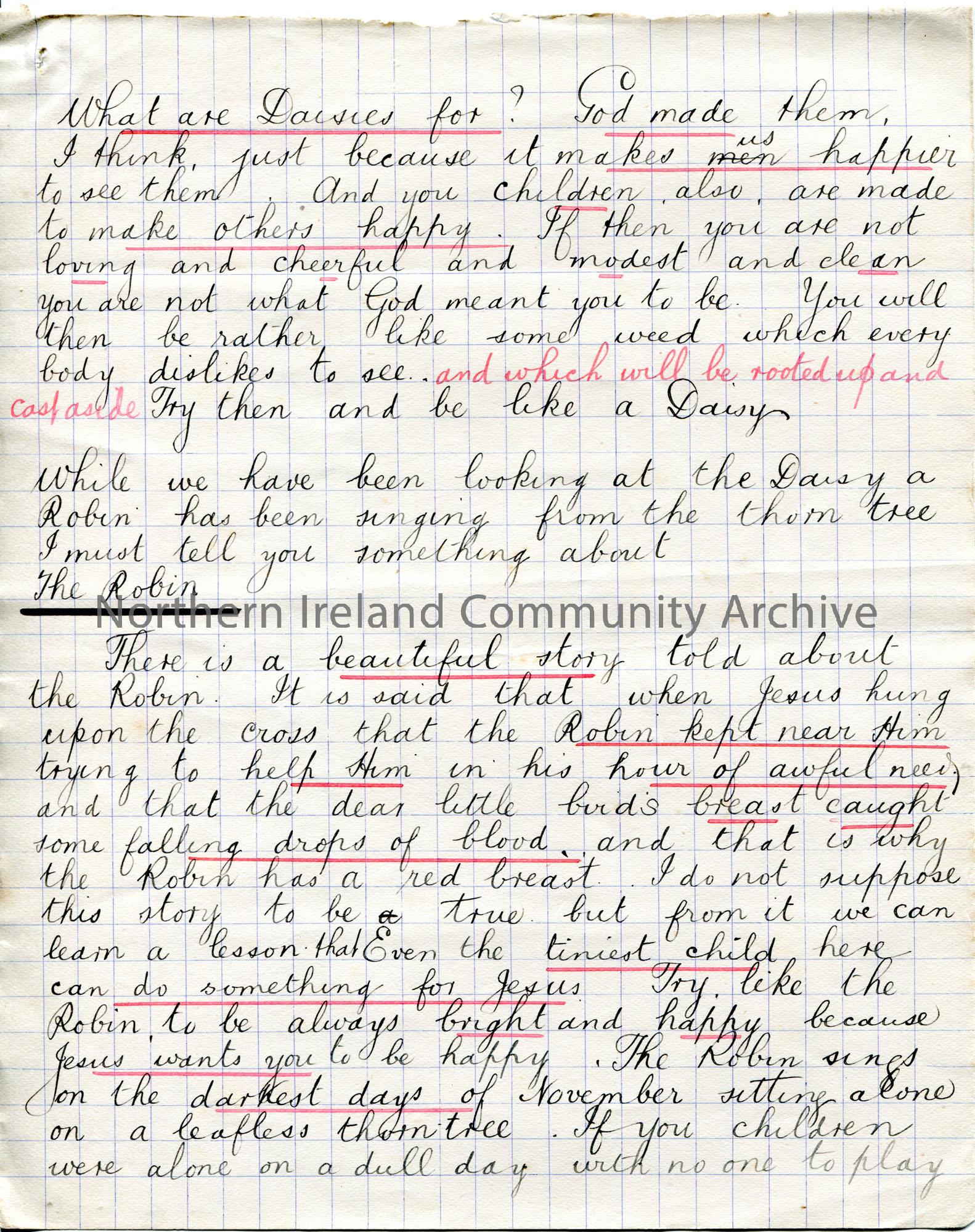 Page 3 of 8. Handwritten story titled, ‘A Country Walk’. By Sam Henry, Chorley in 1903. Directed towards children and refers to God, daisies, Robins a…
