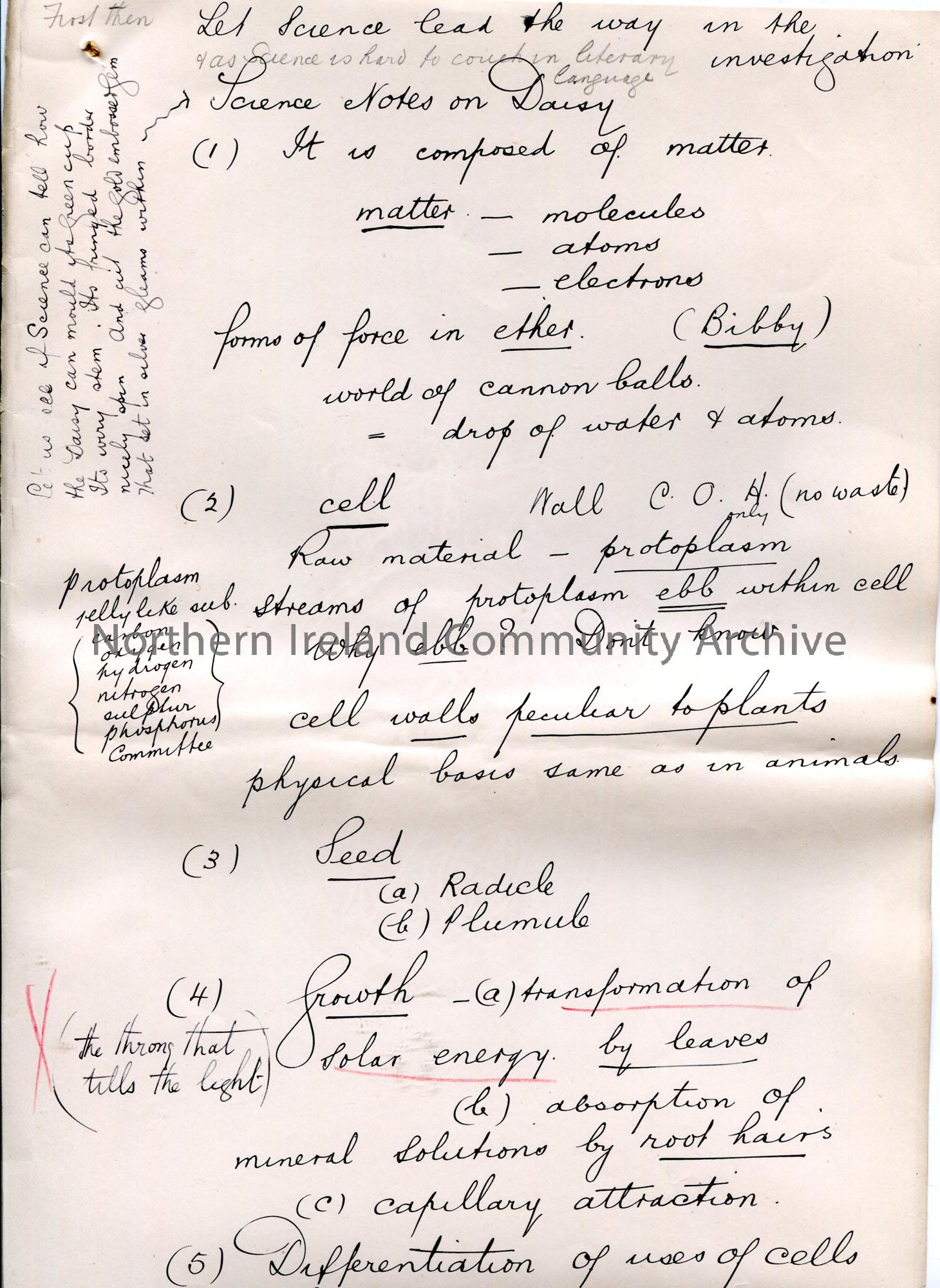 Page 30 of 33. Handwritten essay by Sam Henry titled, ‘The Daisy’. Re the flower. Pages not in order.