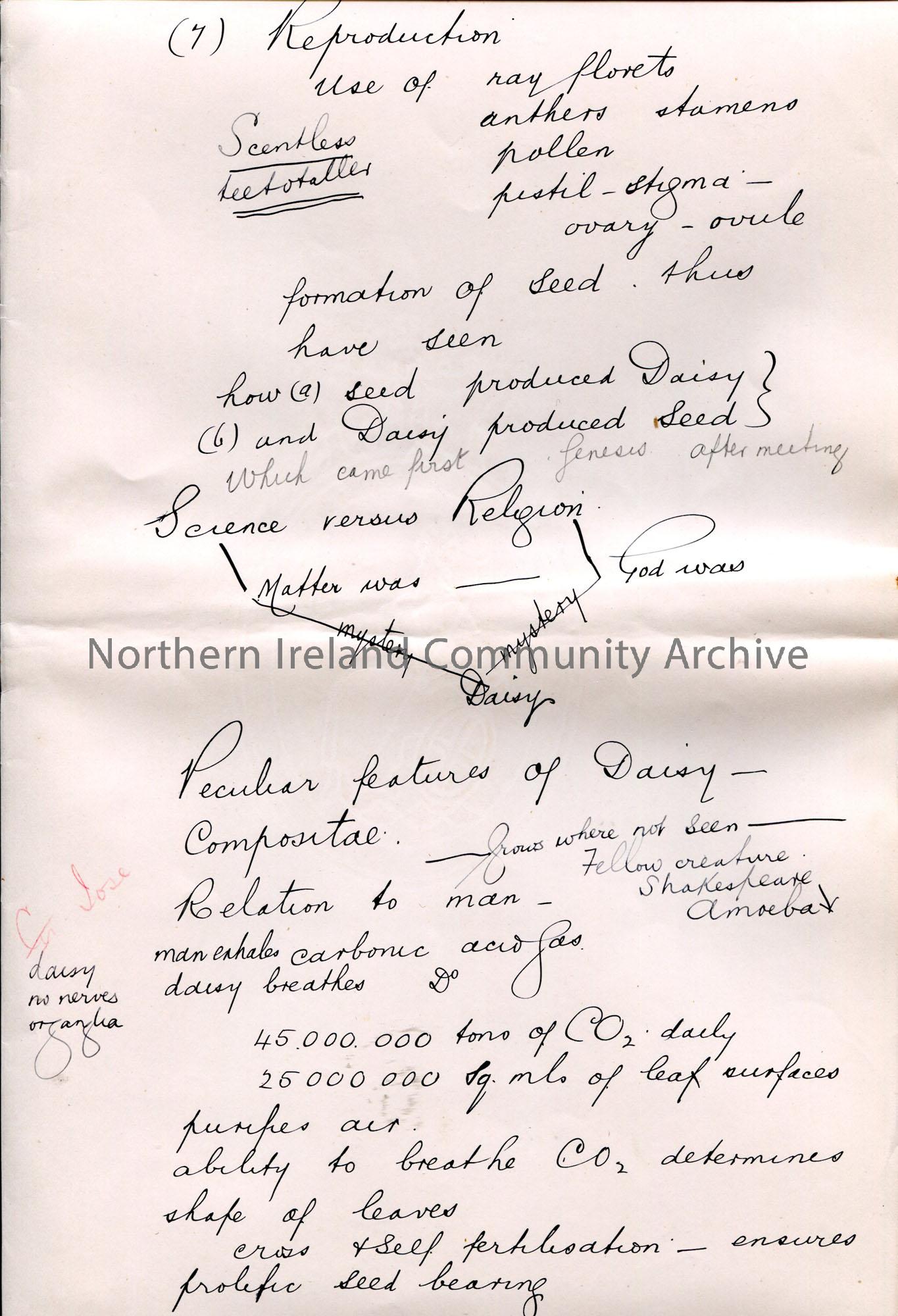 Page 31 of 33. Handwritten essay by Sam Henry titled, ‘The Daisy’. Re the flower. Pages not in order.