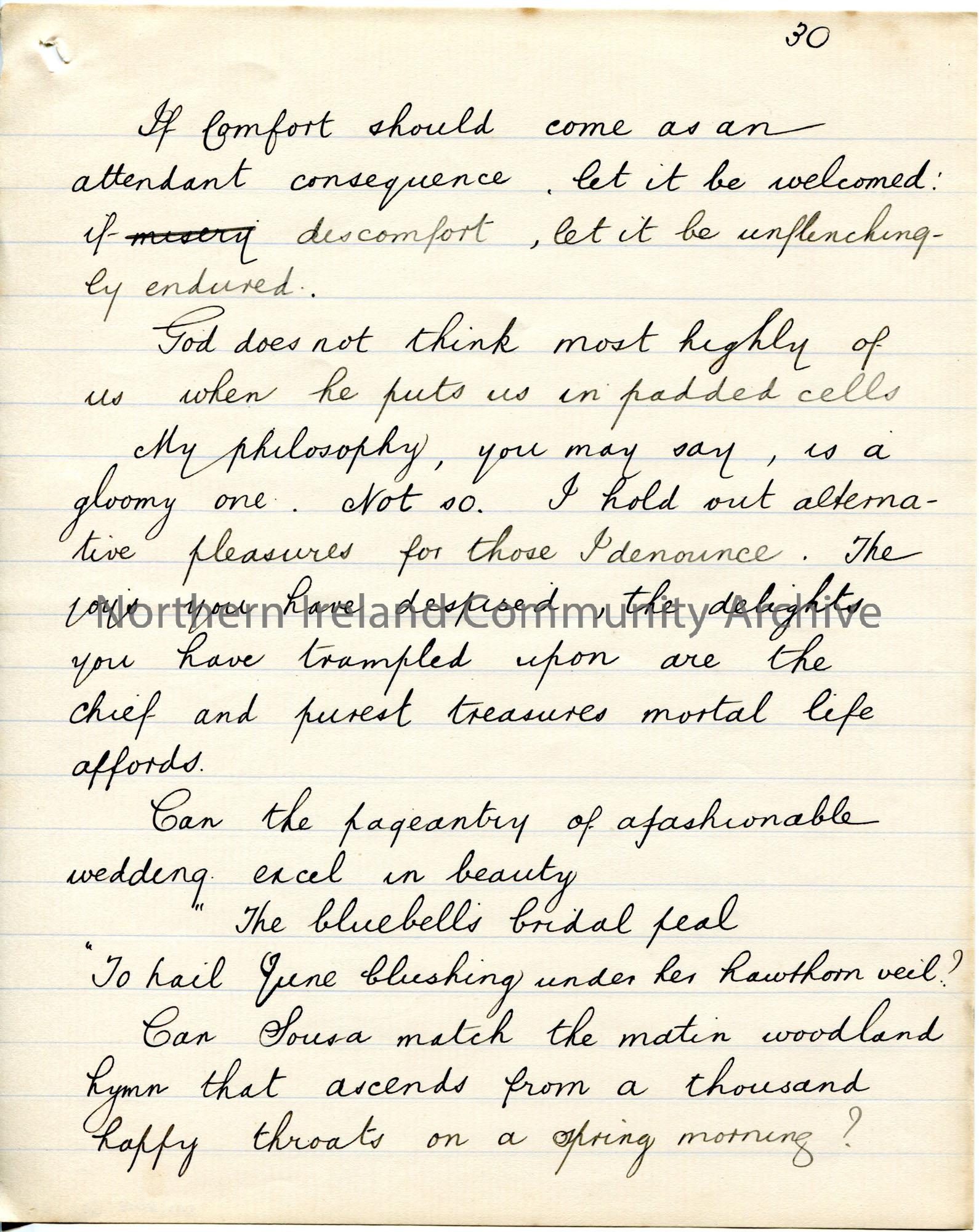 Page 31 of 39. Handwritten essay by Sam Henry titled, ‘The Cult of Comfort’. Title is scored out. Dated Omagh, December 1905. Religious, philosophical…