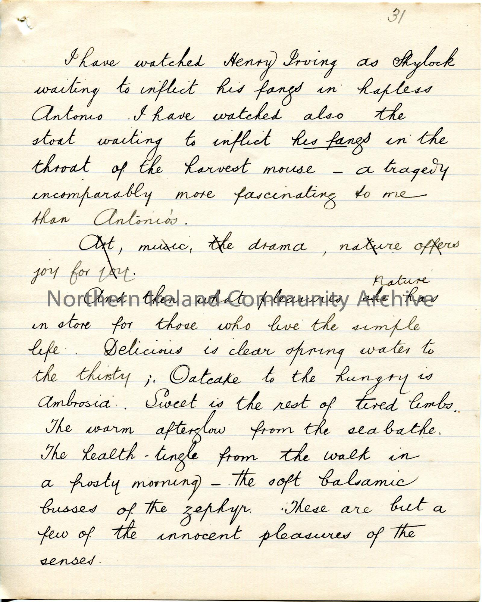 Page 32 of 39. Handwritten essay by Sam Henry titled, ‘The Cult of Comfort’. Title is scored out. Dated Omagh, December 1905. Religious, philosophical…