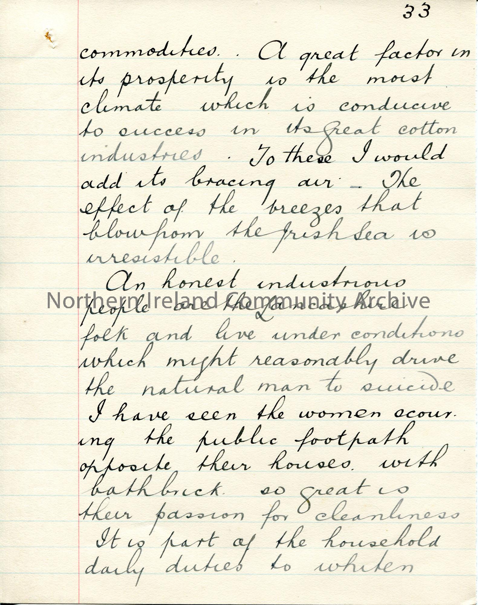 Page 33 of 71. Handwritten, rough essay [ for a talk? ] by Sam Henry titled 'Here and There in the King's Service'. Dated 1909 by JM. Sam Henry talks through his first 15 years of service as an Exciseman. He was based at Falcarragh, Ballymote in Co. Sligo, Lancashire, Uffculme and Omagh in Co. Tyrone.
