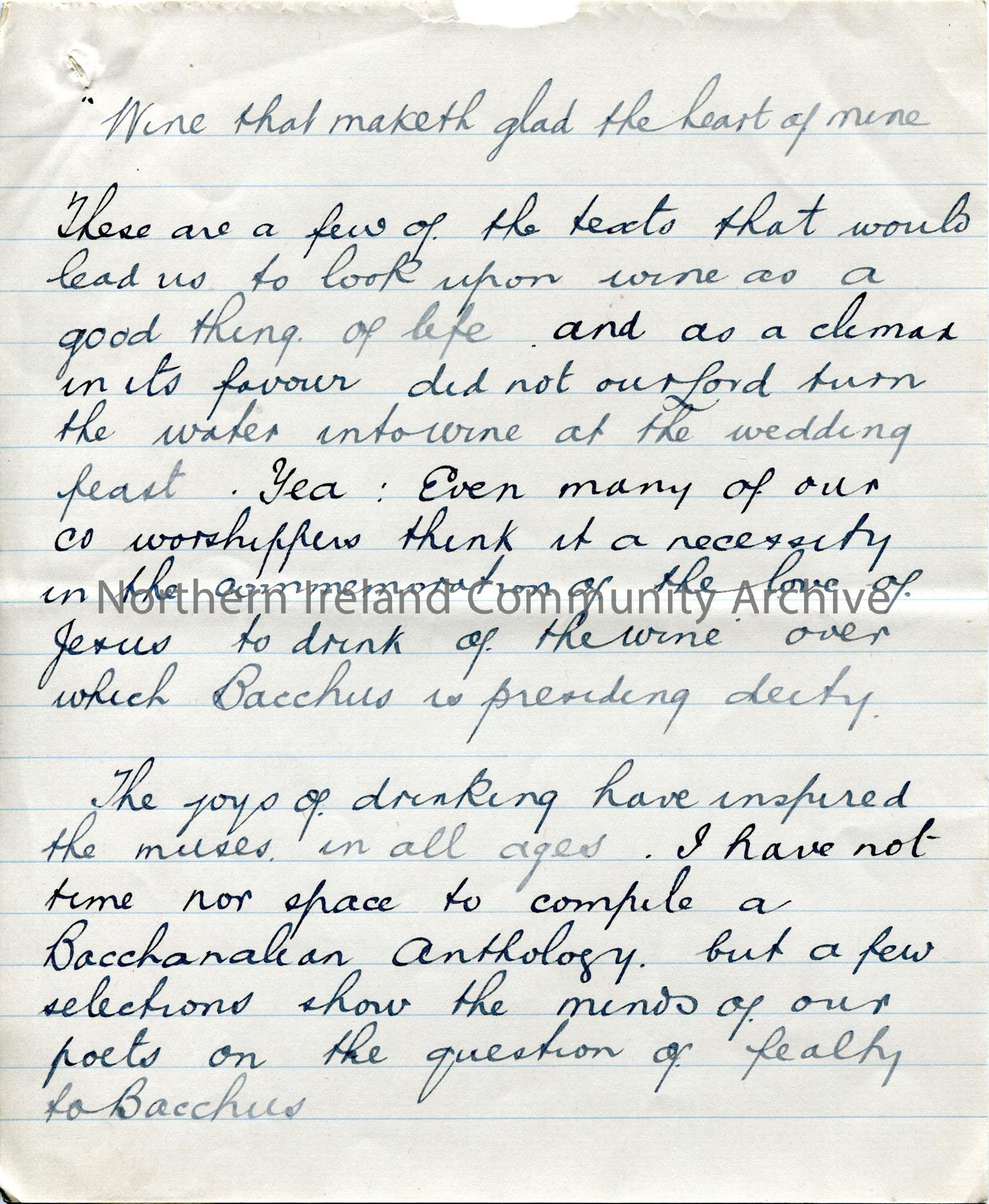 Page 4 of 15. Handwritten essay titled, ‘The Challenge of Bacchius’. Based on the poem ‘The Challenge of Thor’ by Henry Wadsworth Longfellow.