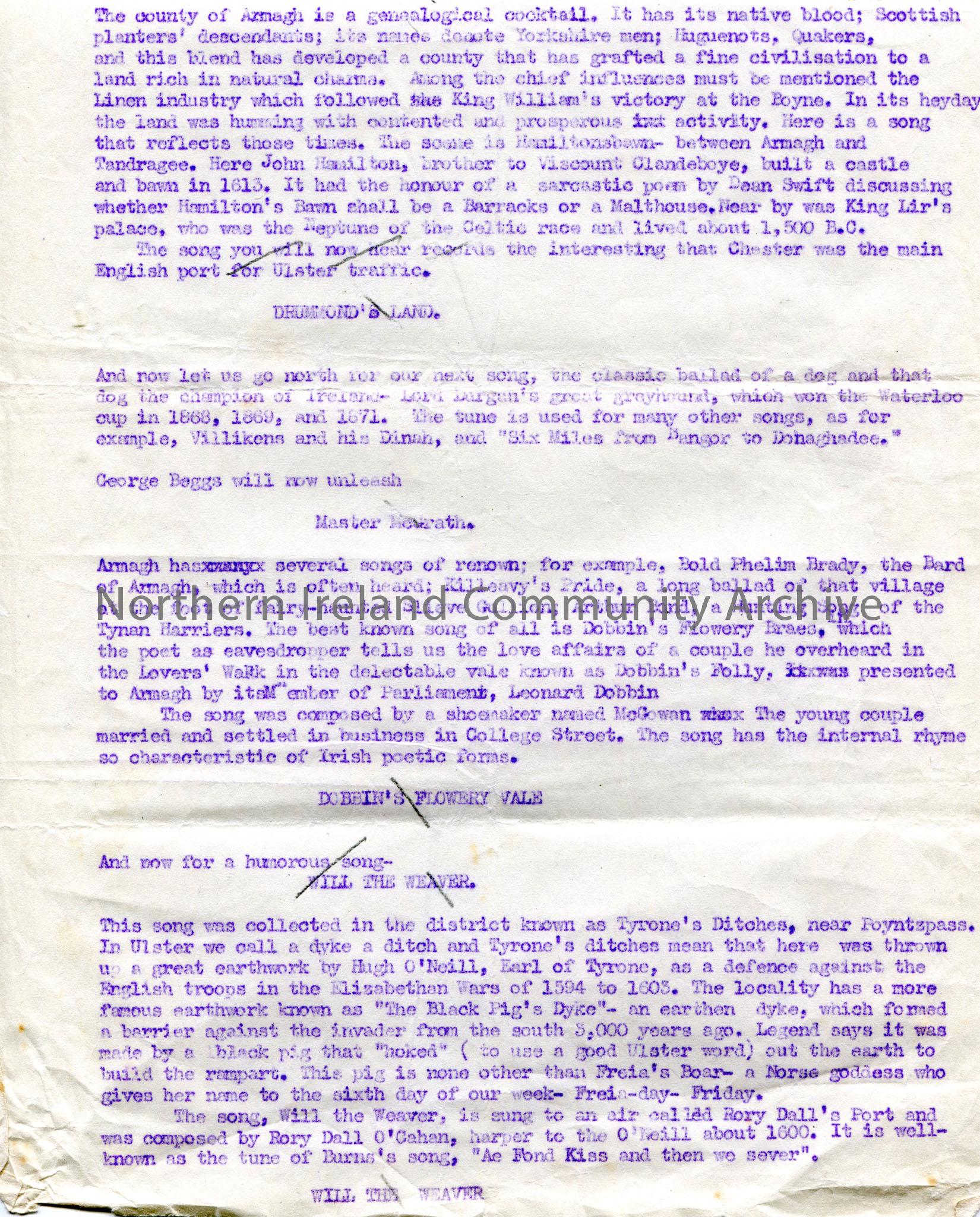 Page 3 of 4 of typed notes re Armagh and its hi...