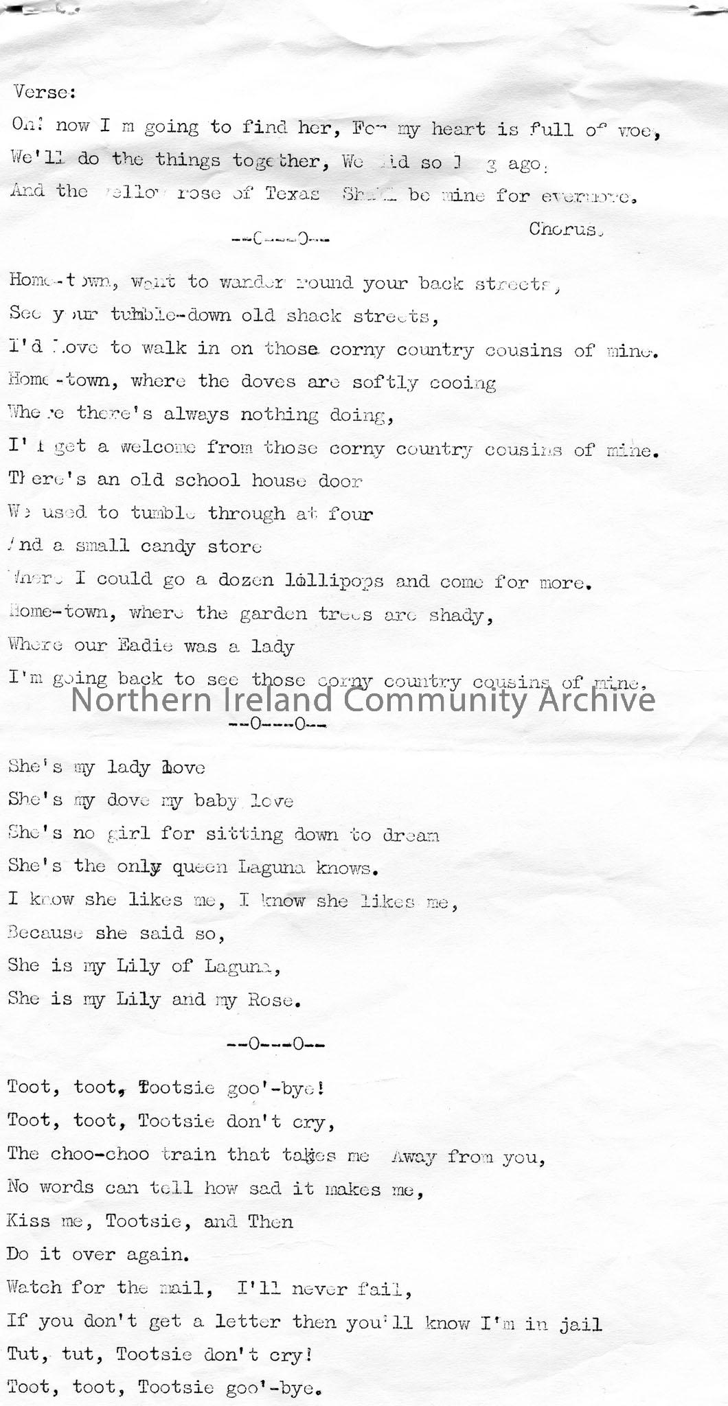 Page 3 of 4 of typed verses from songs titled, ...