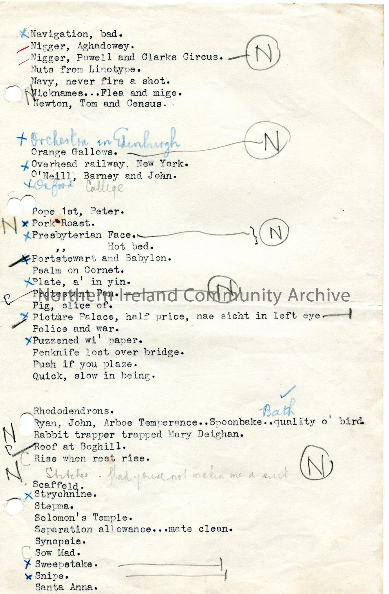 Page 4 of 5 typed list of jokes in alphabetical order – N-S.
