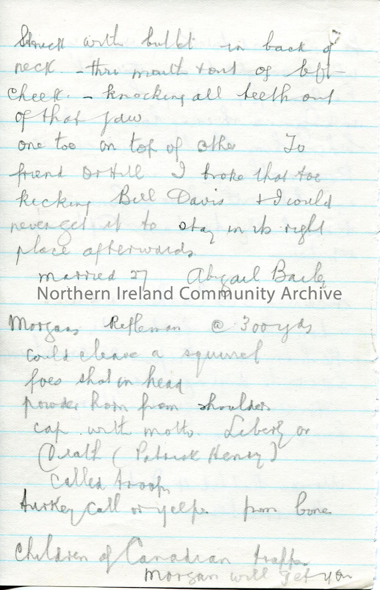 Page 4 of 7. Handwritten notes (double sided) in pencil on lined paper taken from a notebook re General Daniel Morgan, America. – scan125h