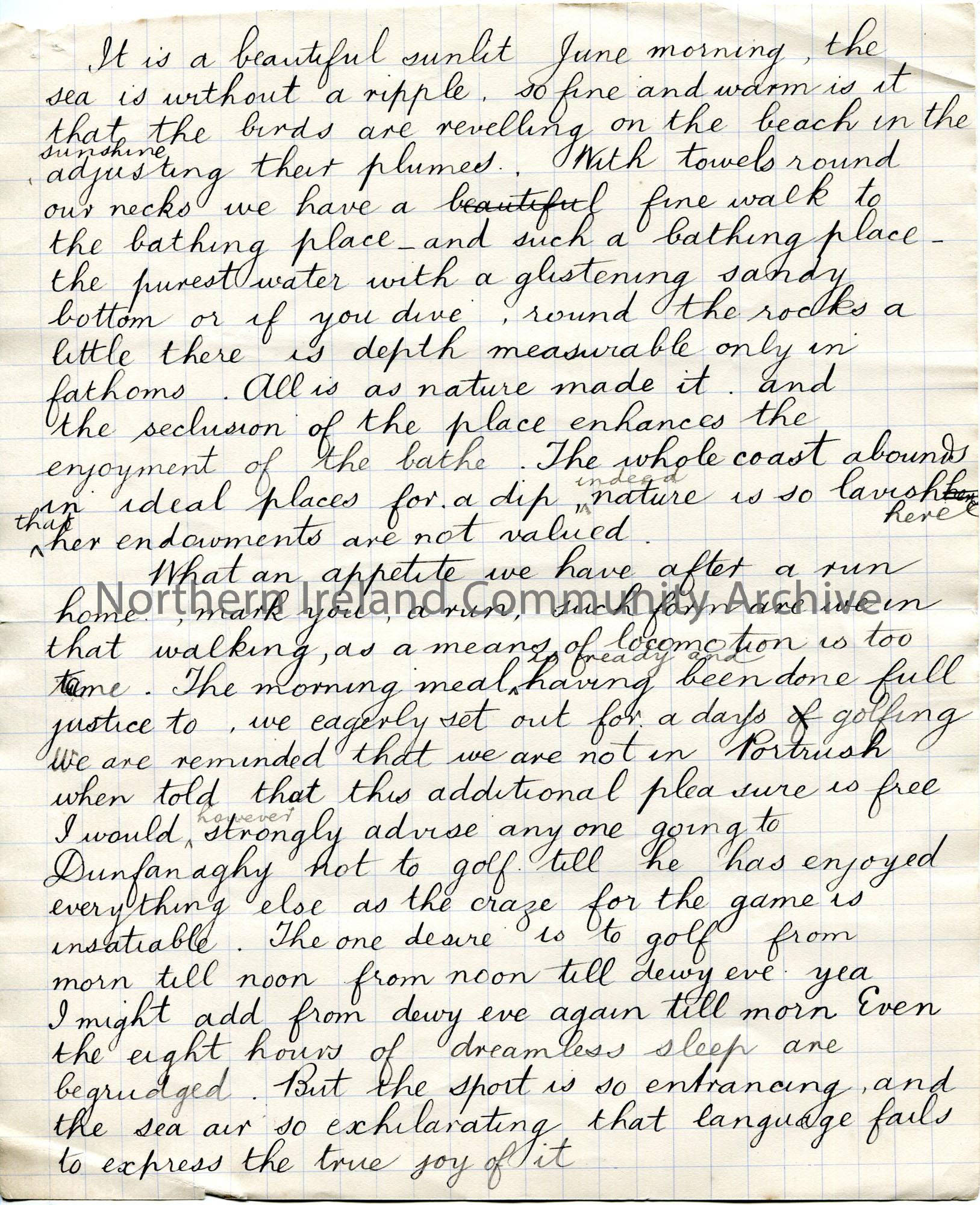 Page 4 of 8. Handwritten story titled, ‘A Holiday in Donegal’.