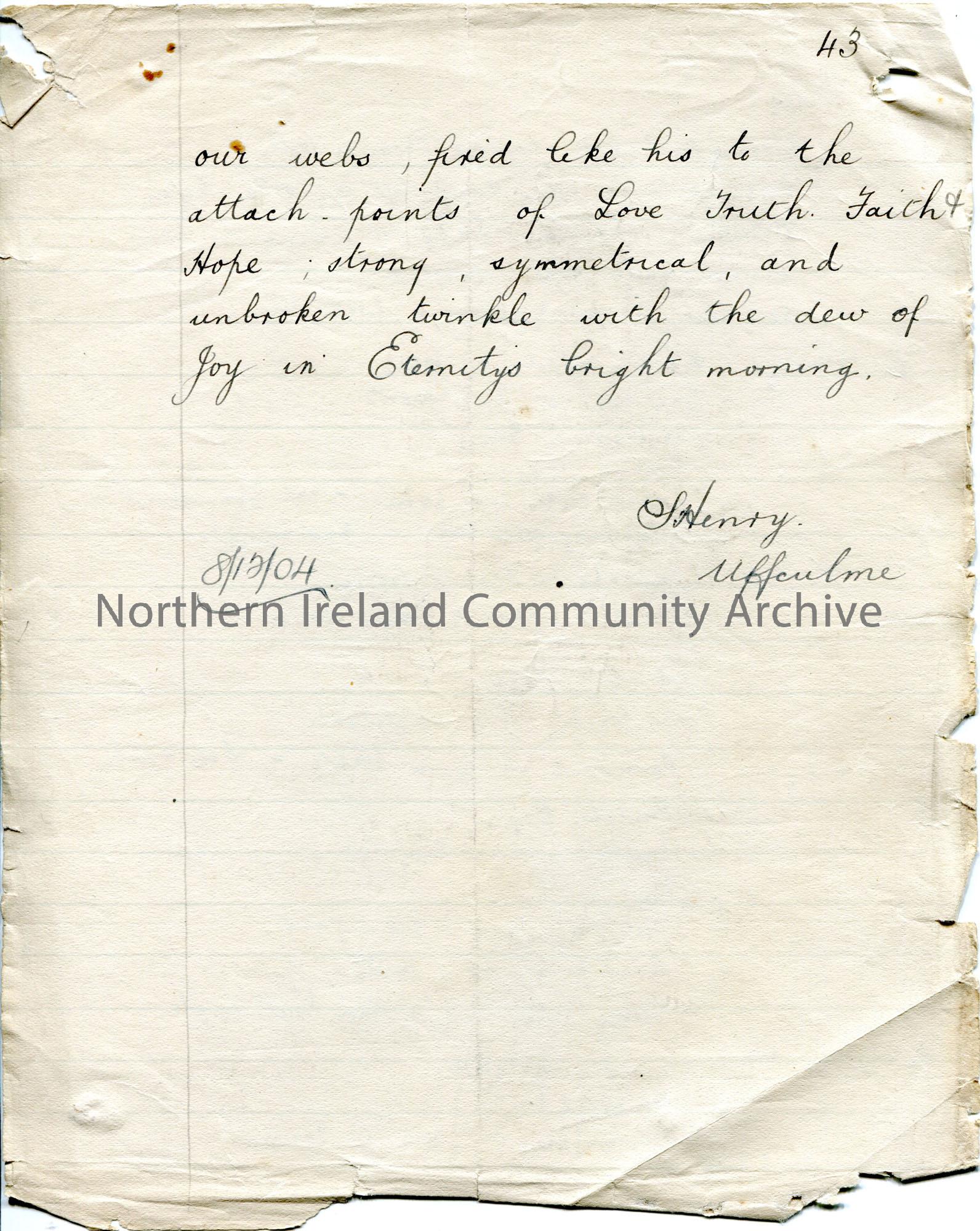 Page 43 of 43. Handwritten essay by Sam Henry titled, 'Walt Whitman. The Bard of Personality'. Short biography of Whitman and discussion of his poetry.