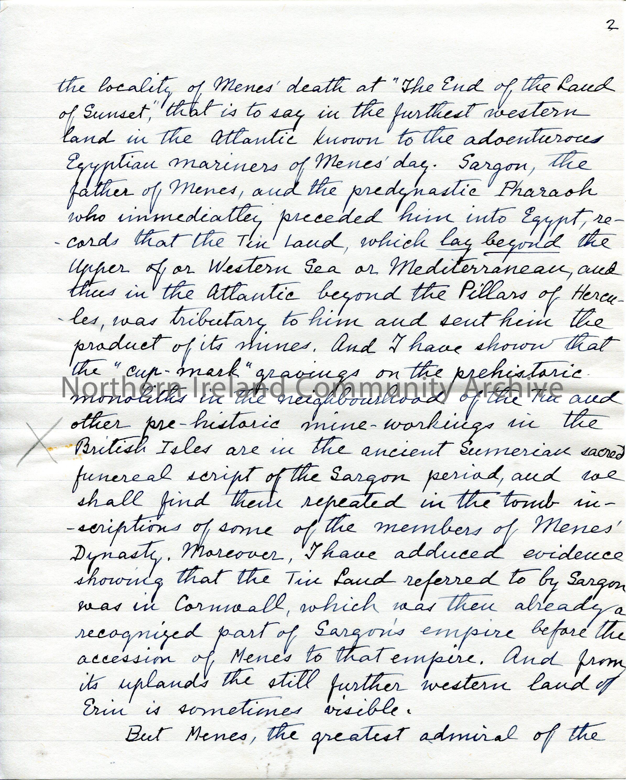 Page 5 of 10. Handwritten notes (numbered 1-7) taken from book 'Egyptian Civilization its Sumerian Origin and Real Chronology' by L A Waddell. Sent along with handwritten letter and notes re 'the Ankh - as the S. Sun cross'. Gave Sam notes in exchange for a lantern slide.