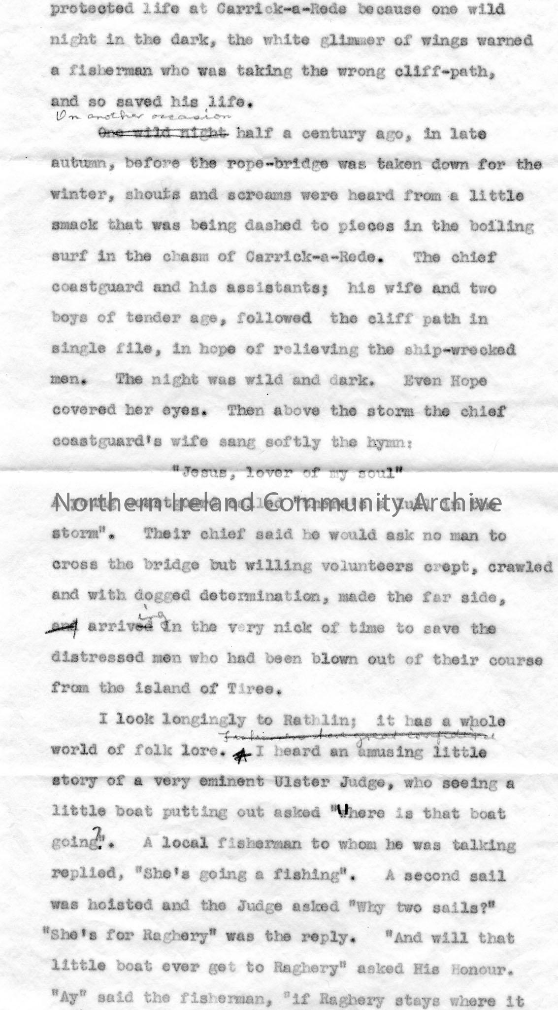 Page 5 of 12. Typed script for broadcast, rough copy, titled, ‘Undiscovered Ulster. Co. Antrim by Sam Henry. Thursday, 27th October, 9.20 – 9.40p.m.’ …