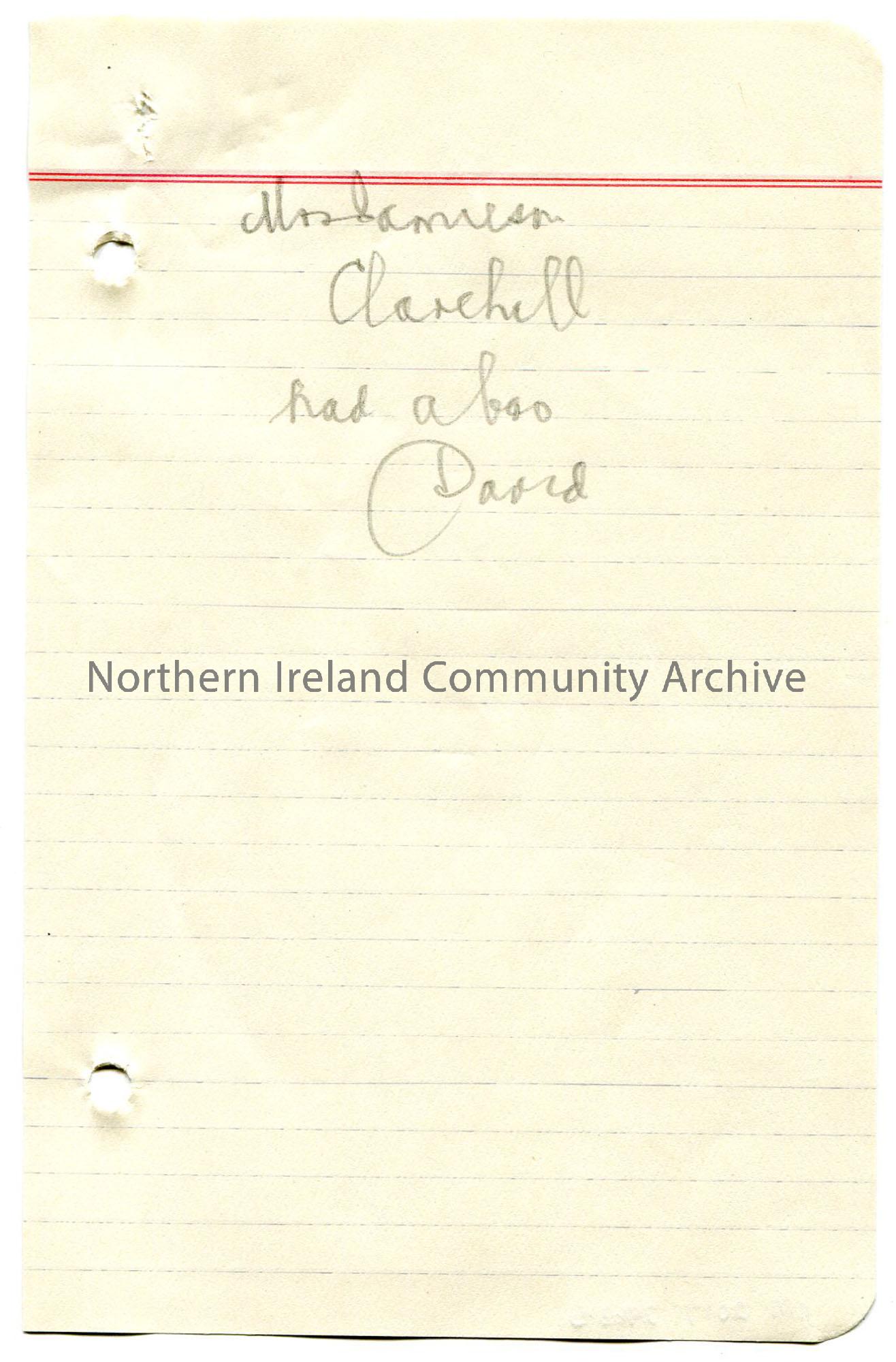 Page 5 of 15. Rough genealogical notes on lined paper in pencil from a notebook re Sam’s ‘Blair Inquiry’. Mentions Hugh Blair and John Blair. ‘Record …