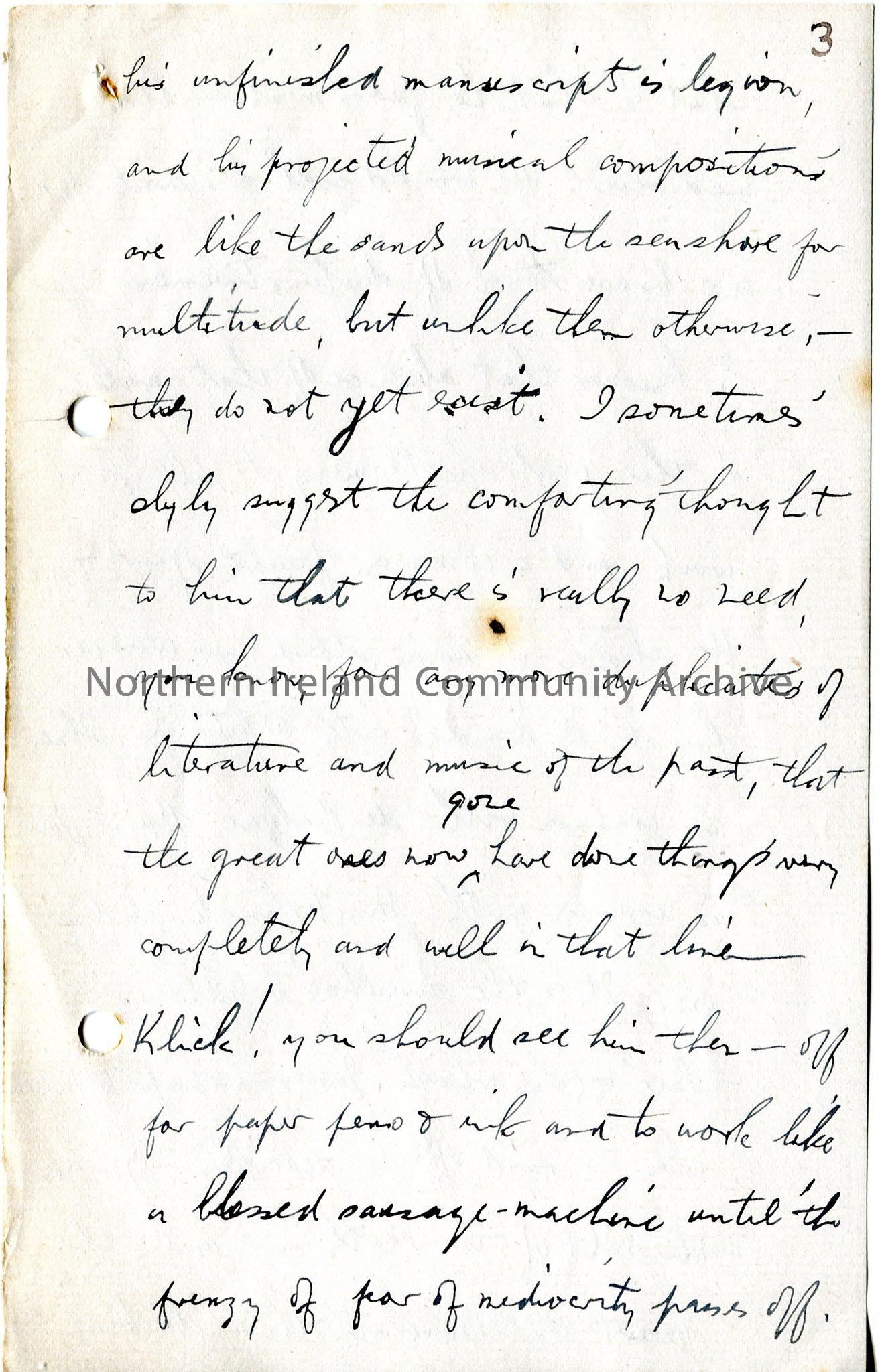 Page 5 of 20 page handwritten letter, on both sides of paper – ends abruptly with no signature – ? last page(s) missing. Discusses his working hours,…