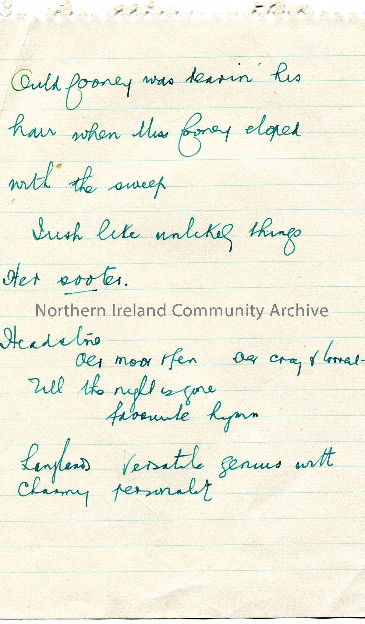 Page 5 of 5. Rough notes on lined paper re Percy French. Includes rough sketch of family tree and information from letters re Percy French, his life a…