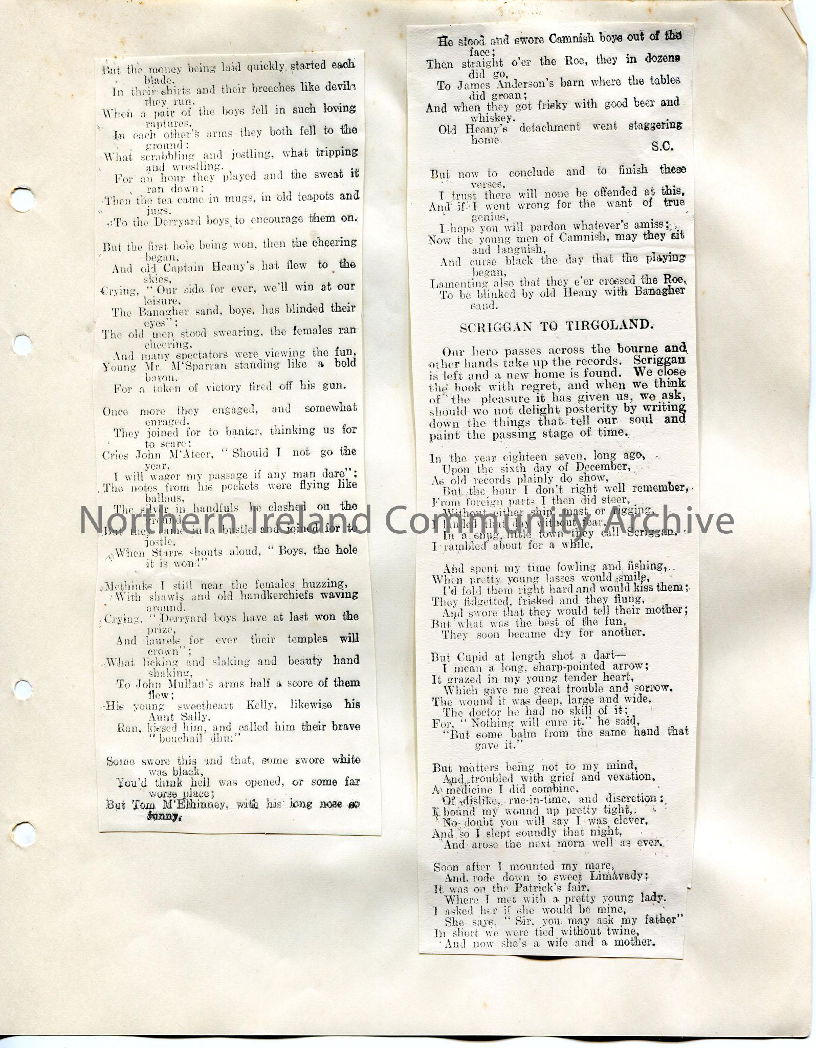 Page 5 of 6 of newspaper cuttings stuck to paper titled, 'Roeside Memories. A Century-Old Commonplace Book. Miscellaneous Records of a County.' Re extracts from the book which include songs, poems, cures for ailments.