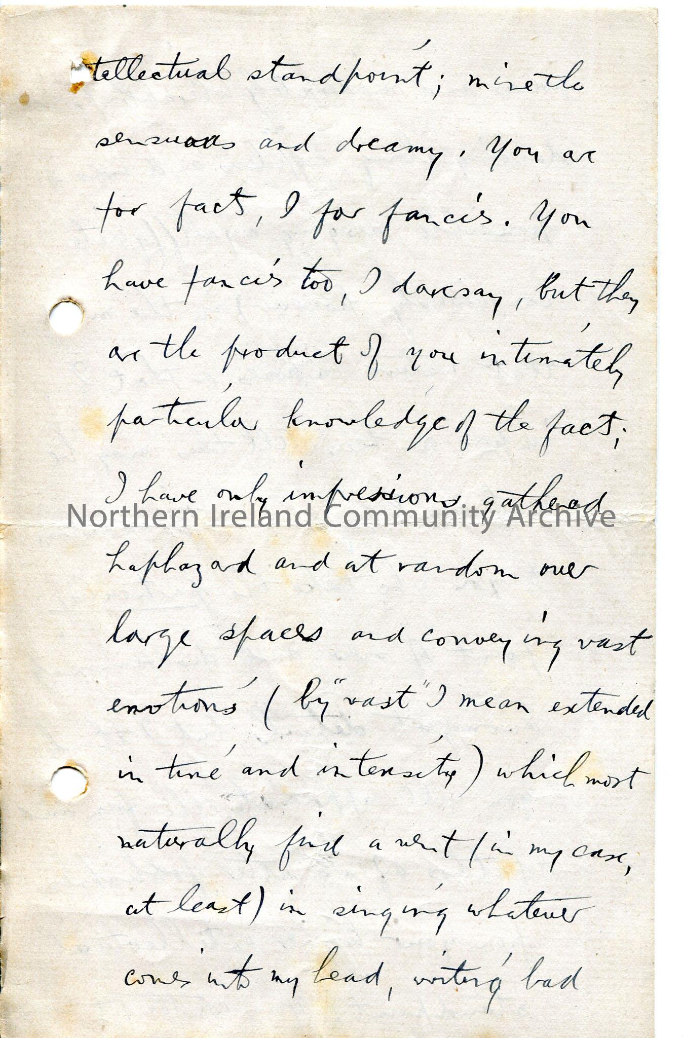 Page 5 of 6 page handwritten letter, on both sides of paper. Discusses his working hours, then a love of nature shared with Sam - elaborates, describing walks e.g. from Cranagh to Barmouth and the sights and sounds along the way