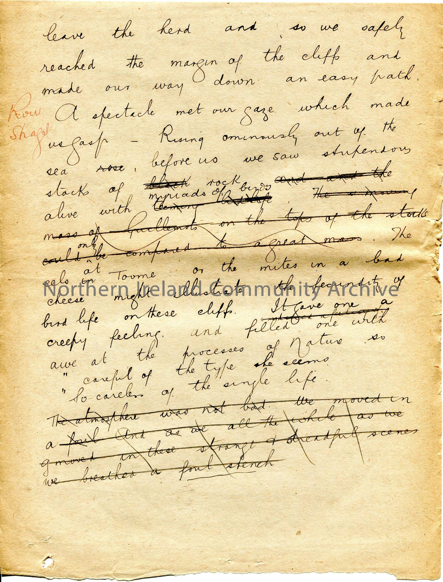 Page 5 of 8. Handwritten lecture (double sided) re a trip by Sam Henry to Rathlin Island on 25th June. Describes the crossing on the Rathlin Mailboat, island life, seeing Kittiwakes and Puffins. Possibly Sam's first trip to Rathlin ?