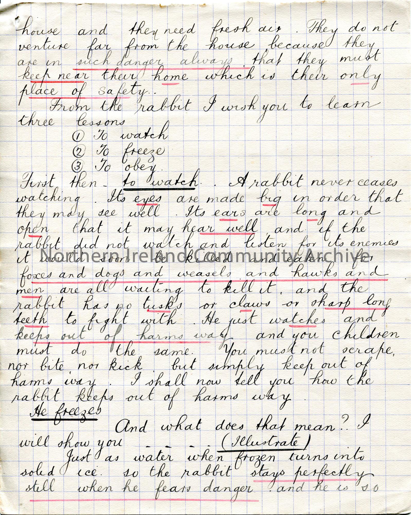 Page 5 of 8. Handwritten story titled, 'A Country Walk'. By Sam Henry, Chorley in 1903. Directed towards children and refers to God, daisies, Robins and talking rabbits.