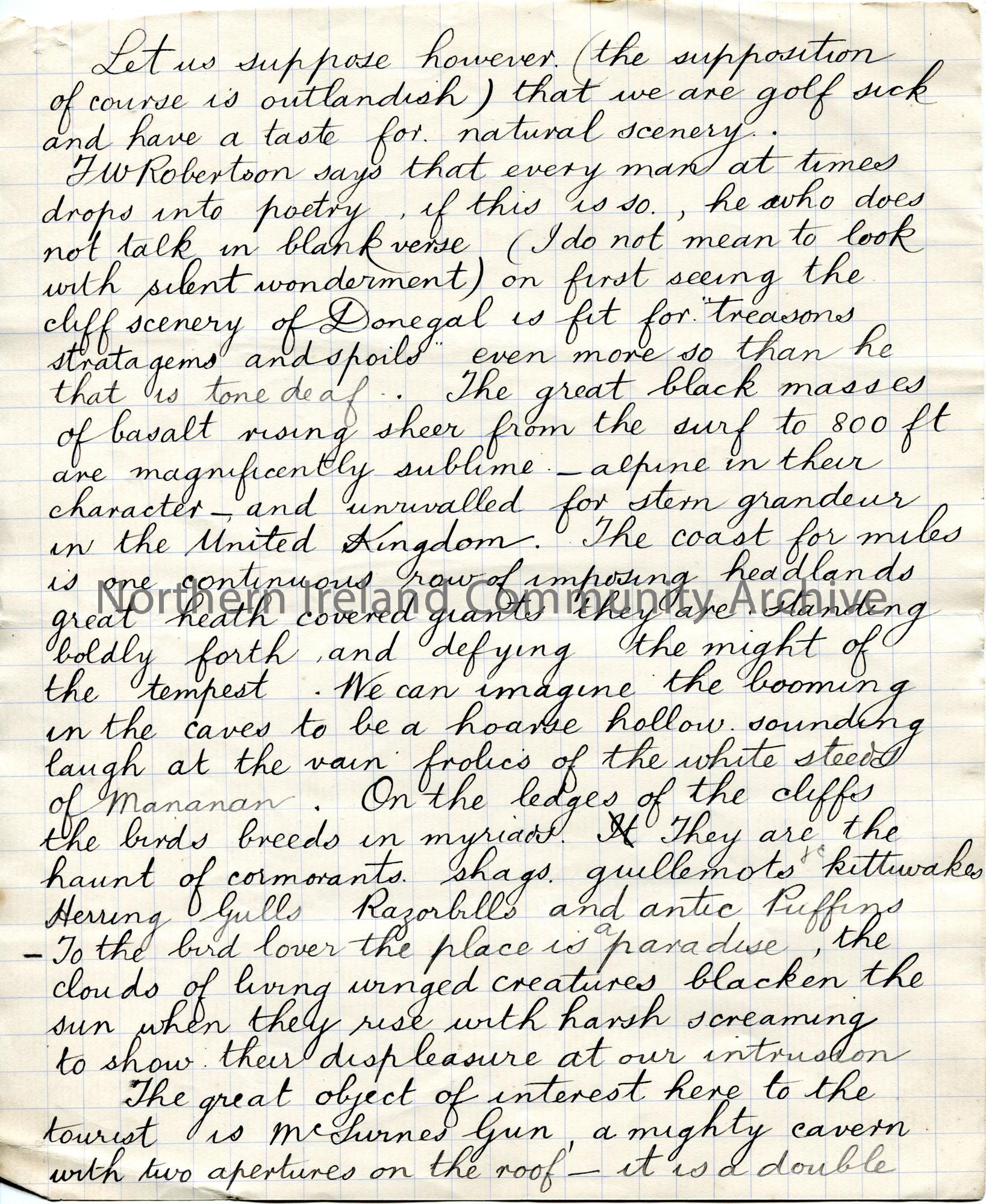 Page 5 of 8. Handwritten story titled, ‘A Holiday in Donegal’.