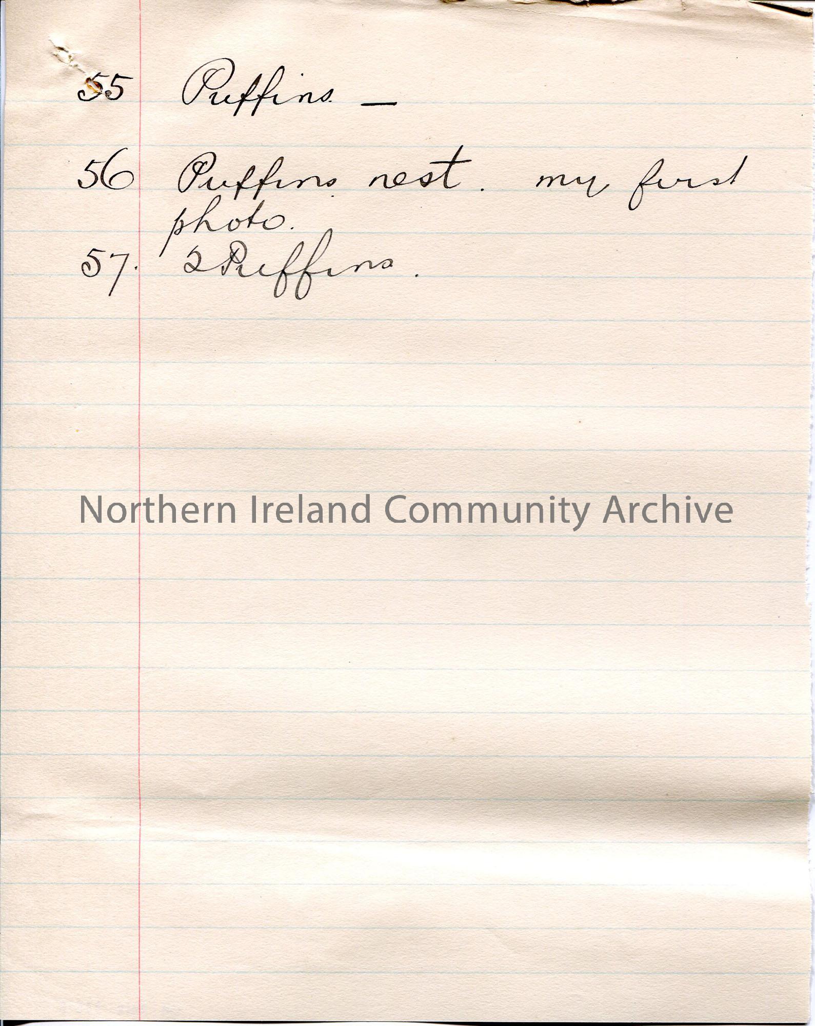 Page 5 of 9. Handwritten rough notes for a lecture by Sam Henry re Rathlin – The Voyage Out. Numbered for slides 42-68. Mentions spinner Rosy Black, B…