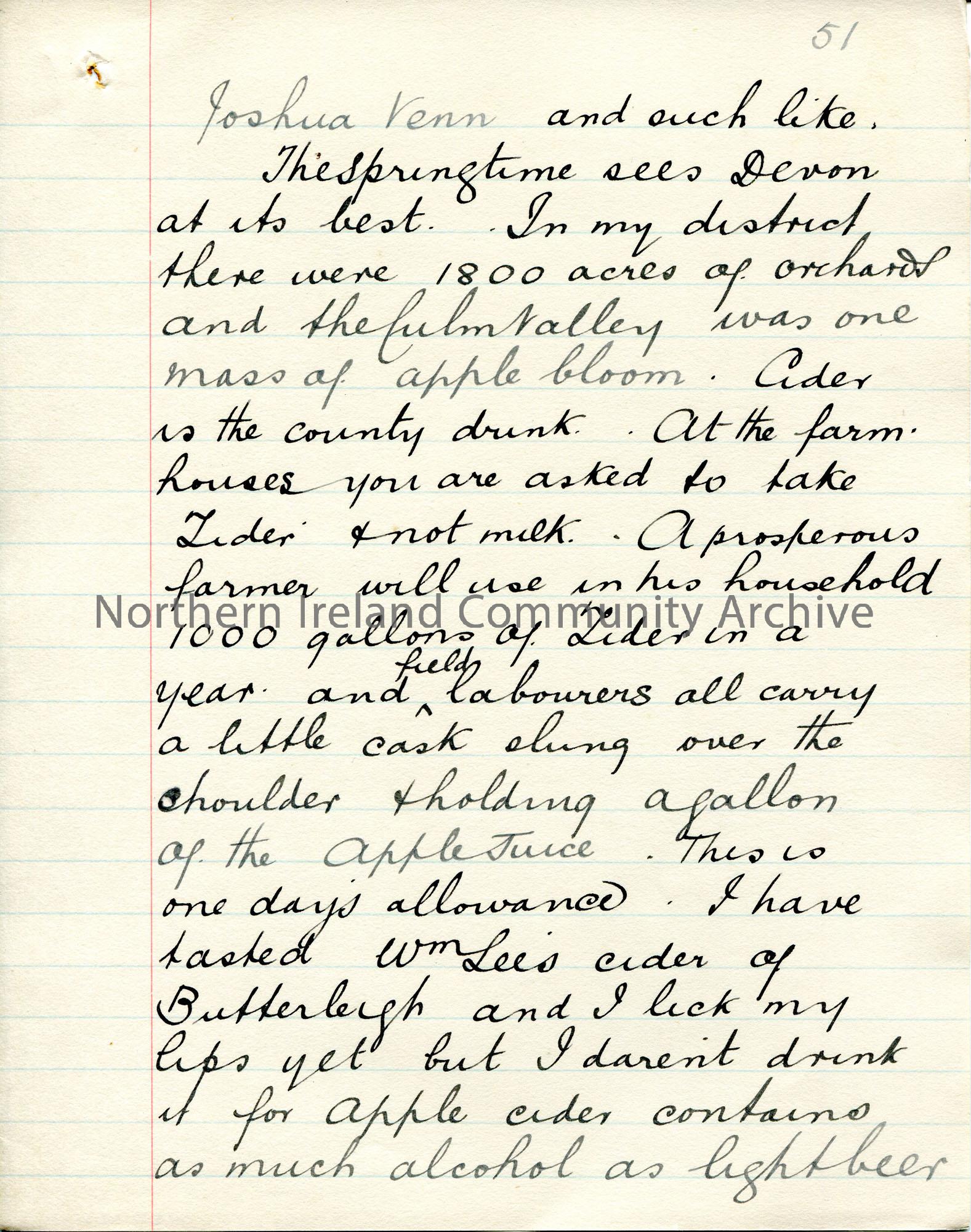 Page 51 of 71. Handwritten, rough essay [ for a talk? ] by Sam Henry titled 'Here and There in the King's Service'. Dated 1909 by JM. Sam Henry talks through his first 15 years of service as an Exciseman. He was based at Falcarragh, Ballymote in Co. Sligo, Lancashire, Uffculme and Omagh in Co. Tyrone.
