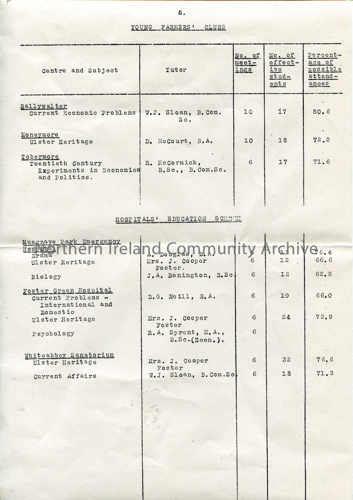 Page 6 of 10. Typed Draft of Sixteenth Annual Report, 1947 for Queen’s University of Belfast Joint Committee For Adult Education.
