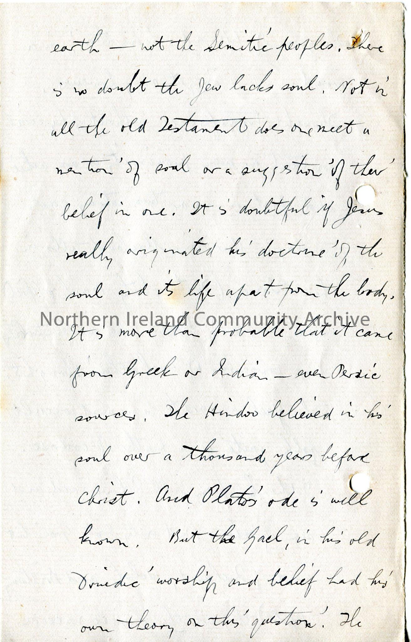 Page 6 of 20 page handwritten letter, on both sides of paper - ends abruptly with no signature - ? last page(s) missing. Discusses his working hours, books he is reading and authors he admires, different types of religion and mysticism, mentions himself as a 'second hand war correspondent' - talks of himself in the second person and his literary aspirations