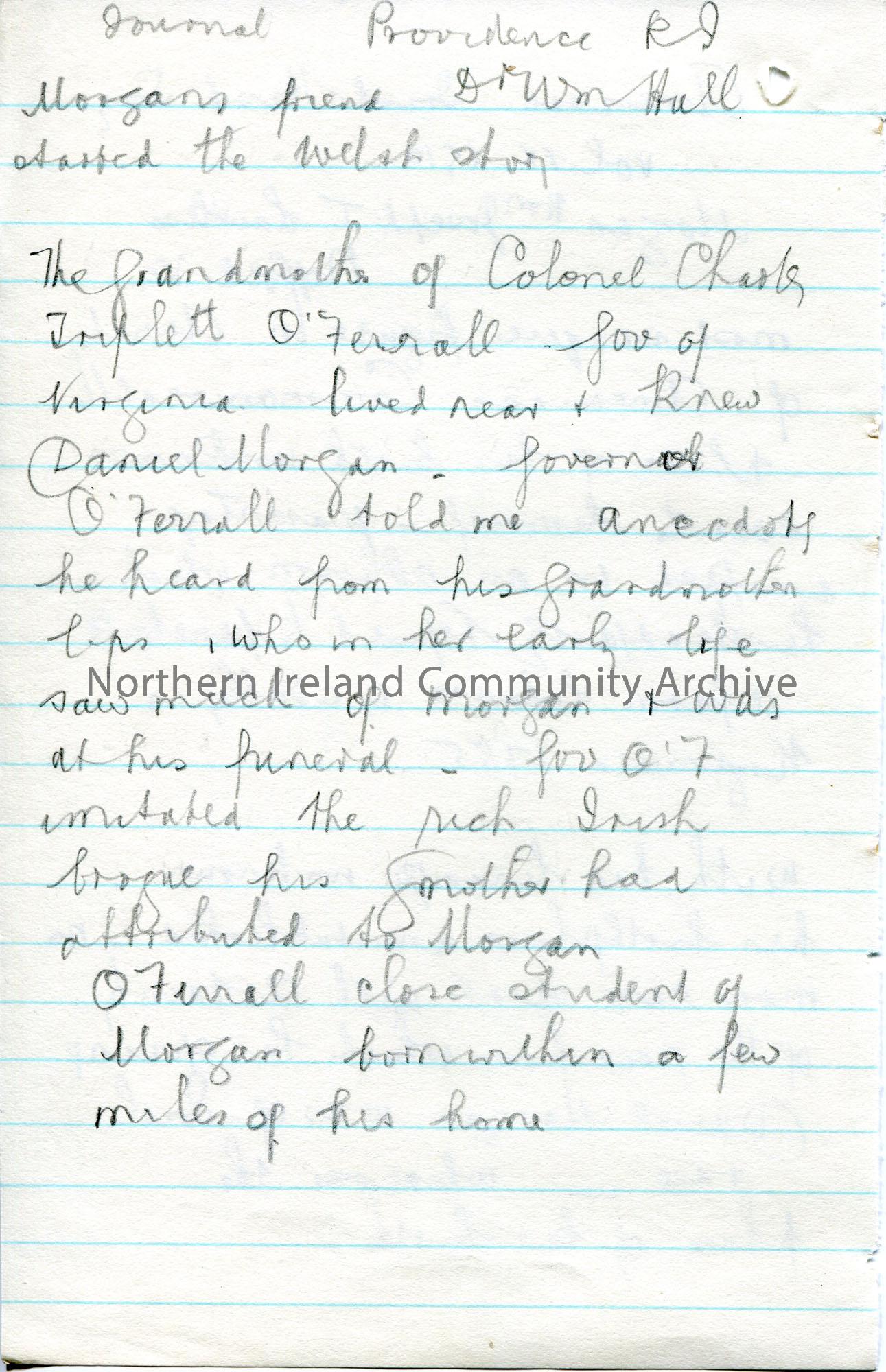 Page 6 of 7. Handwritten notes (double sided) in pencil on lined paper taken from a notebook re General Daniel Morgan, America. – scan125l