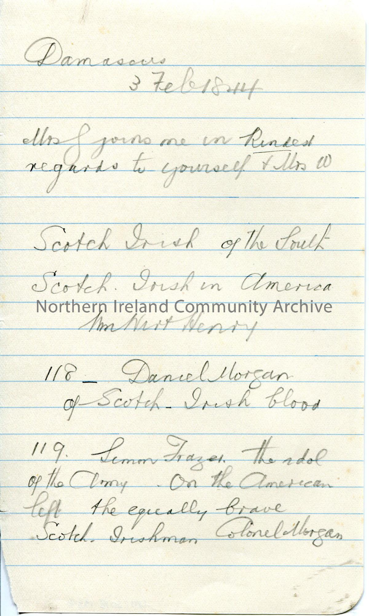 Page 6 of 8. Handwritten notes in pencil onto lined pages from a notebook. Re General Daniel Morgan, America.