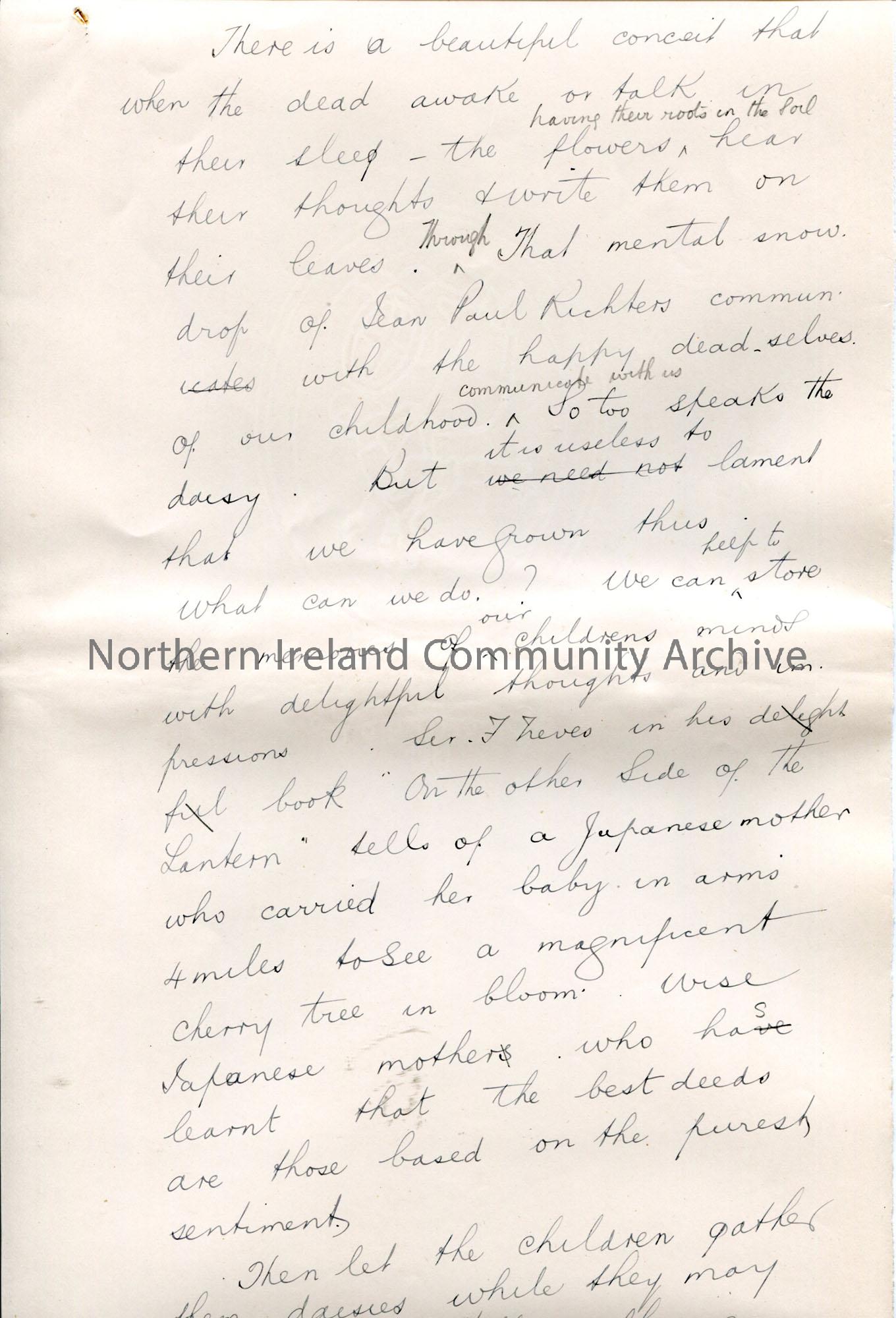 Page 7 of 33. Handwritten essay by Sam Henry titled, ‘The Daisy’. Re the flower. Pages not in order.