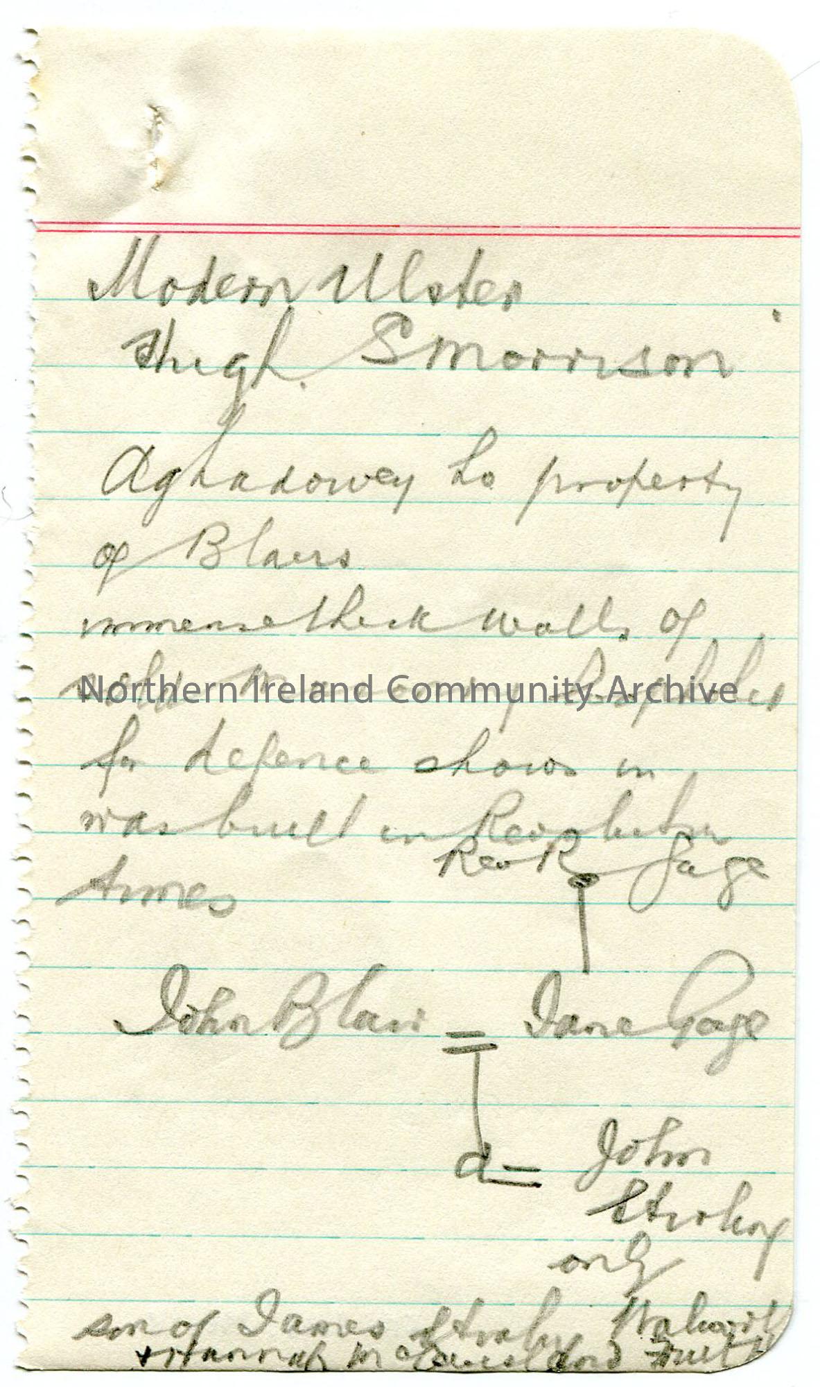 Page 8 of 13. Rough notes on lined paper which appear to be from a notebook. Re Sam’s research into the Blair family name.