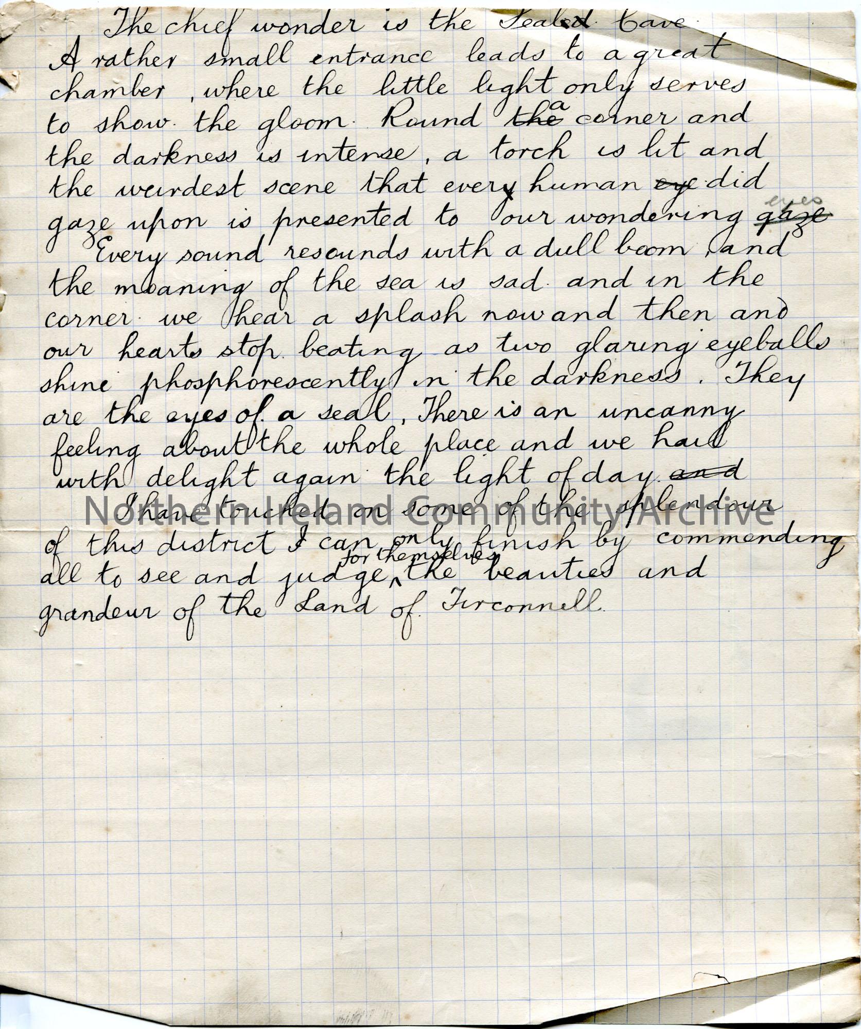 Page 8 of 8. Handwritten story titled, ‘A Holiday in Donegal’.