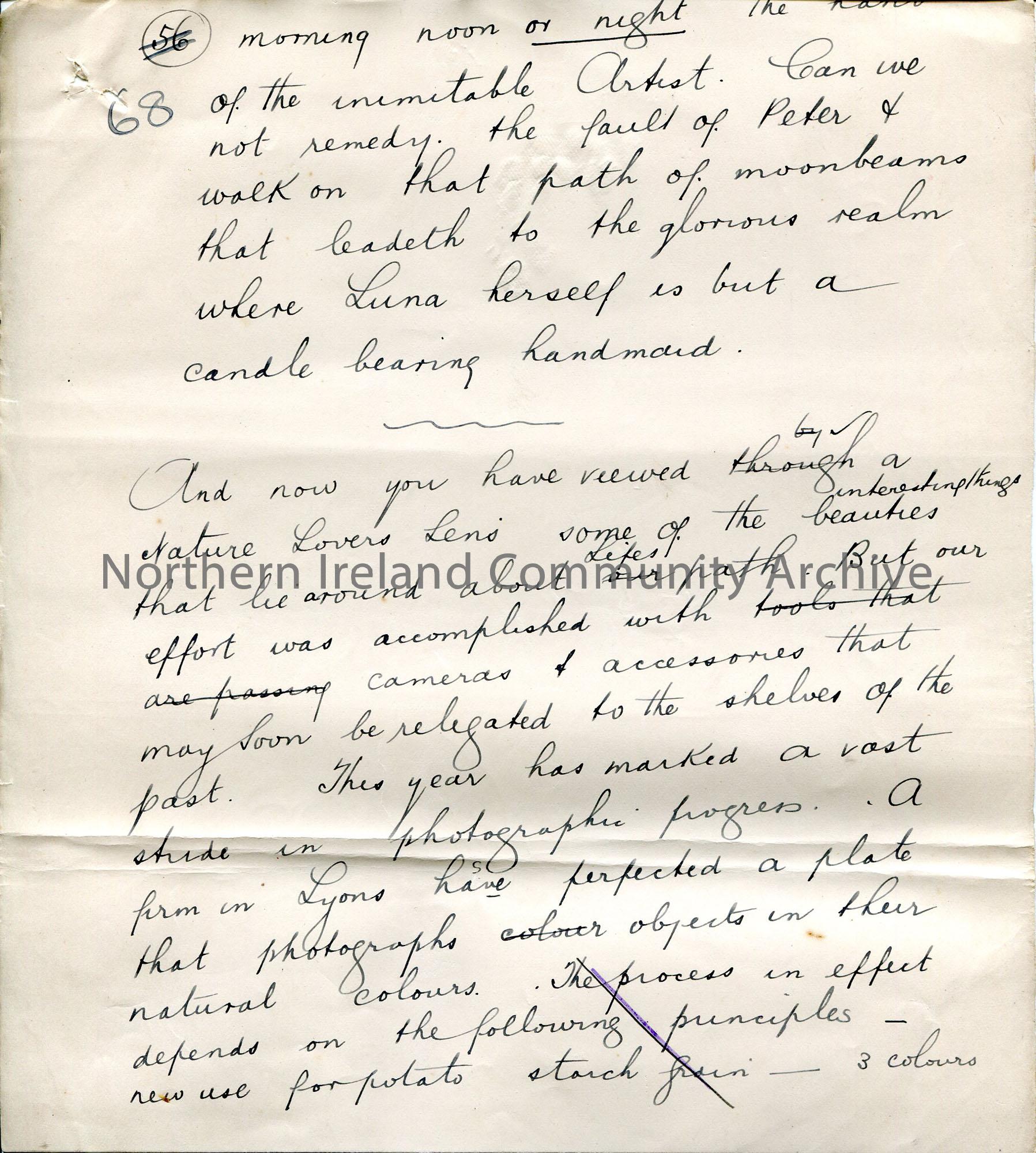 Page 8 of 9. Handwritten rough notes for a lecture by Sam Henry re Rathlin – The Voyage Out. Numbered for slides 42-68. Mentions spinner Rosy Black, B…