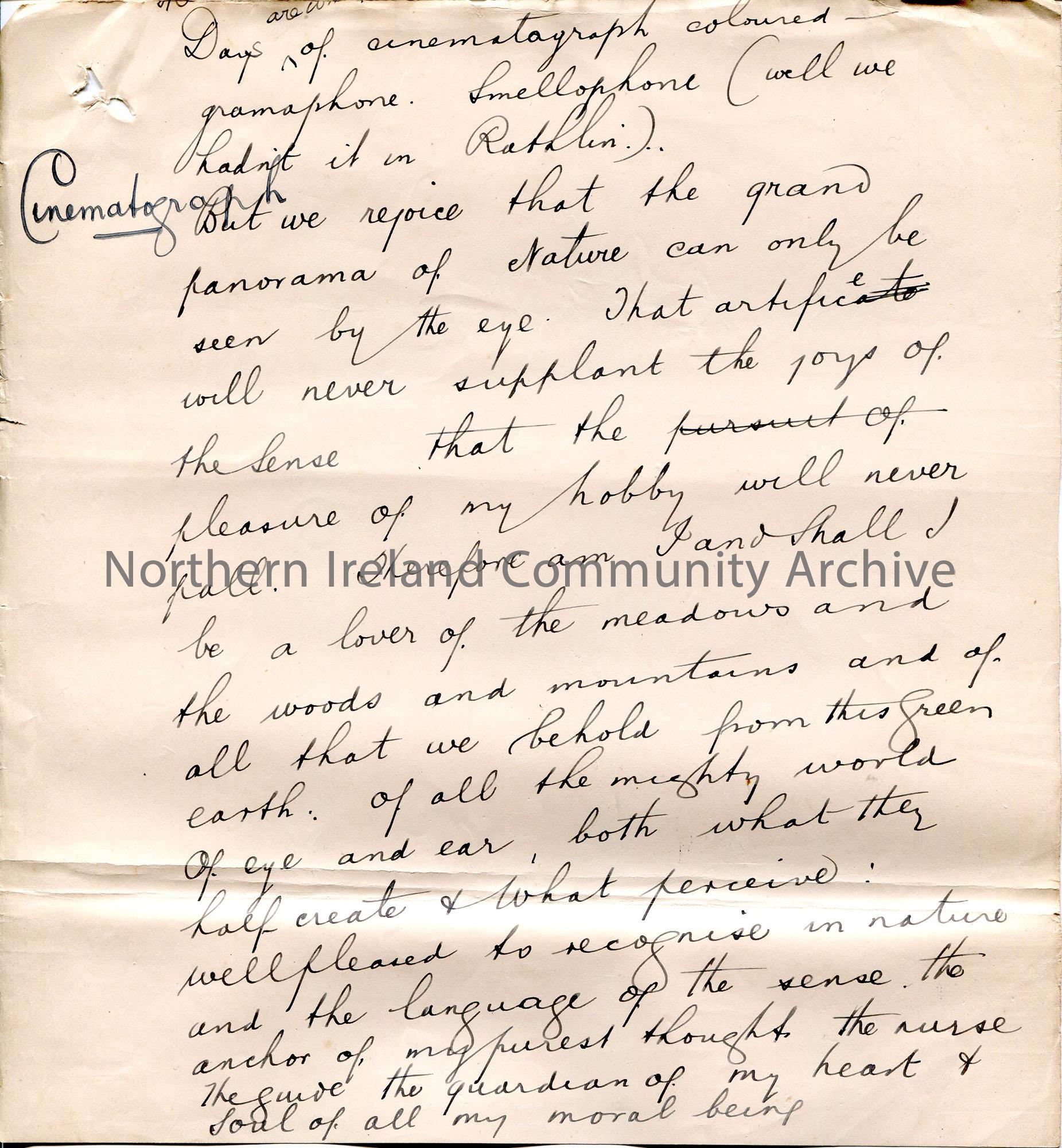 Page 9 of 9. Handwritten rough notes for a lecture by Sam Henry re Rathlin – The Voyage Out. Numbered for slides 42-68. Mentions spinner Rosy Black, B…