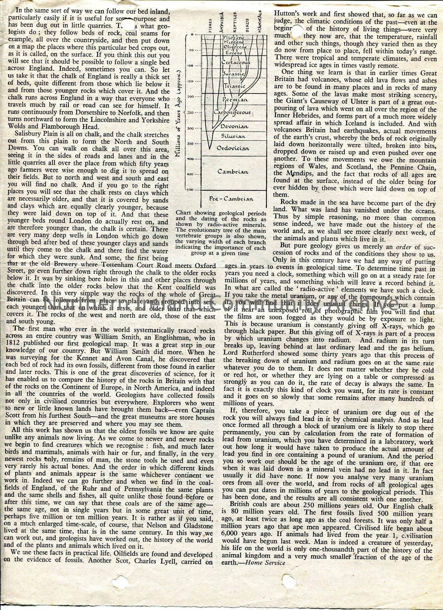Page cut from a form of publication (double sided) featuring an article by D. M. S. Watson titled, ‘How Old is the Earth?’ Features a photographic ima… – scan030b