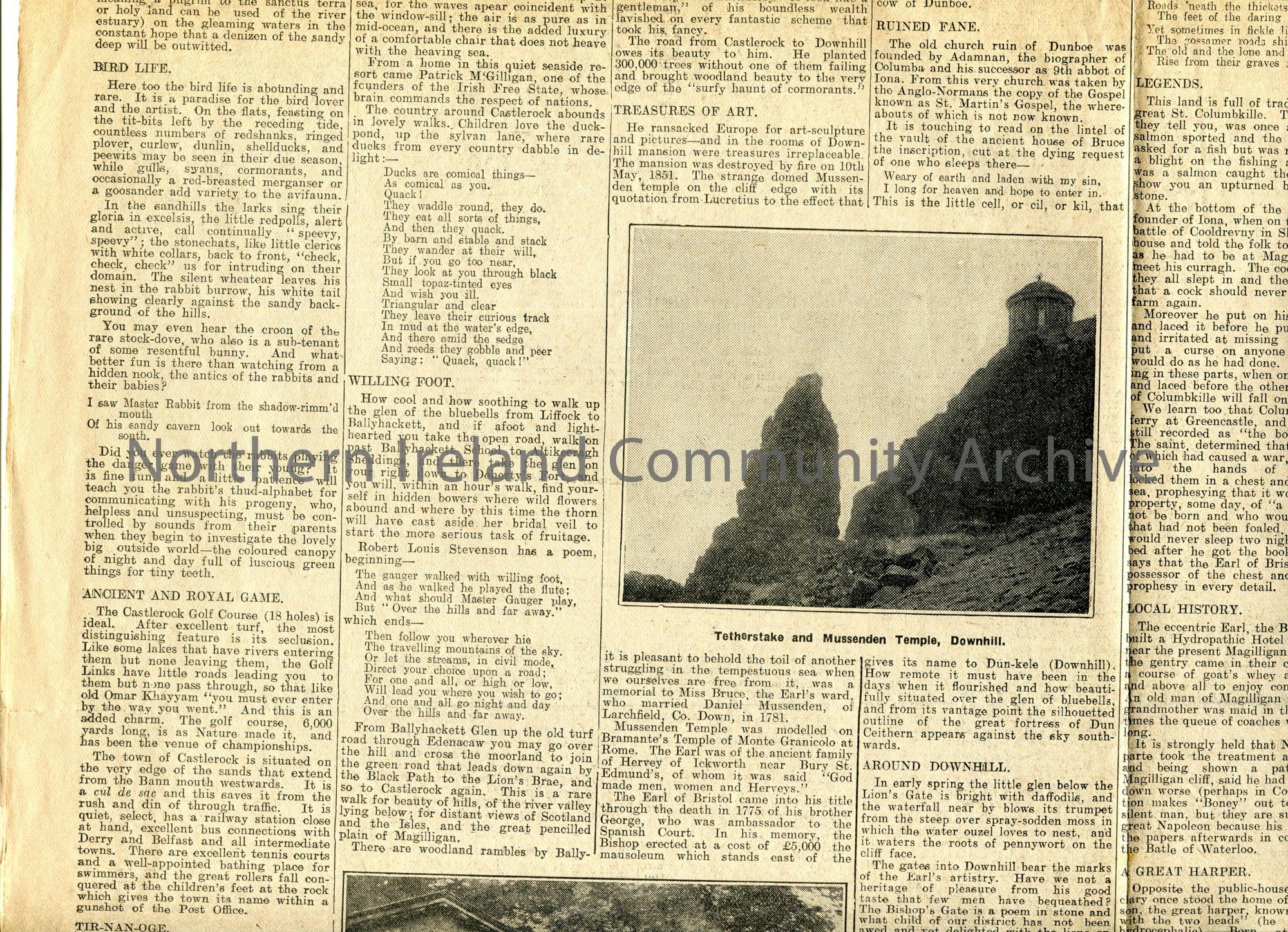 Page cut from the Northern Constitution newspaper, 17th June 1933. Features an article titled, 'From Bann to Foyle. Castlerock, Downhill, Magilligan. Land of Saints and Sand Dunes'.