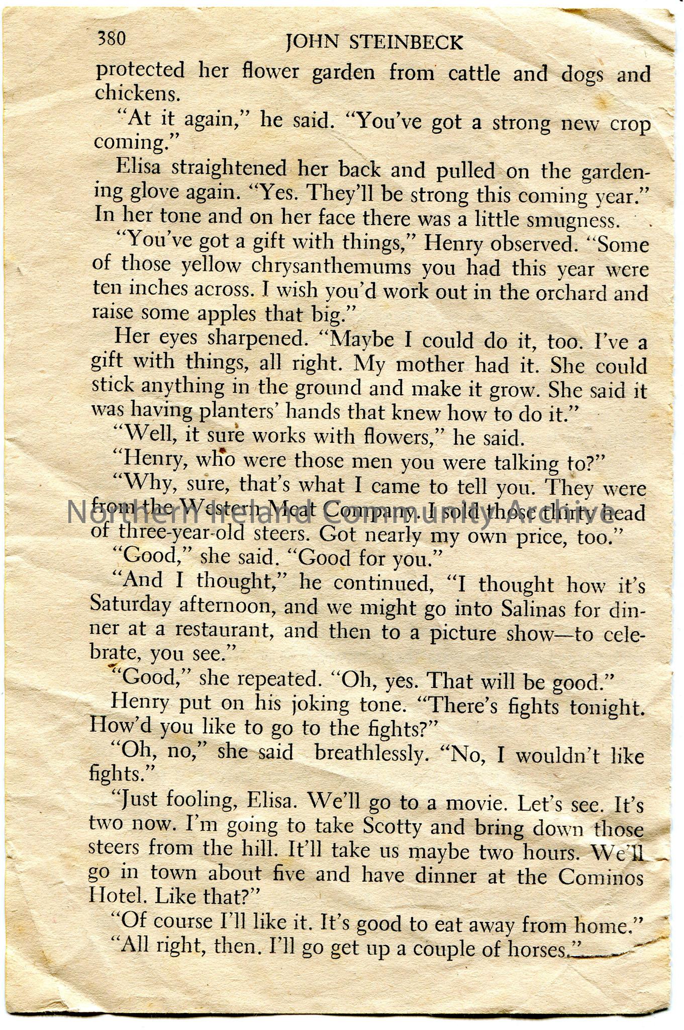 Page from a book, “The Chrysanthemums”, by John Steinbeck. Page number 379 and 380. – img020b