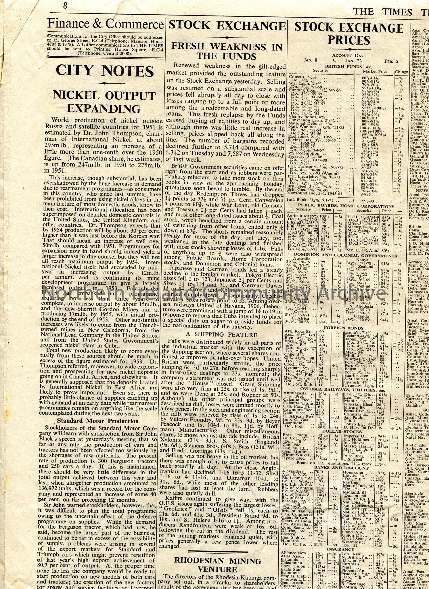 Page from ‘The Times’ newspaper. Dated Thursday 20th December, 1951. Articles re finance and commerce and sports news articles.
