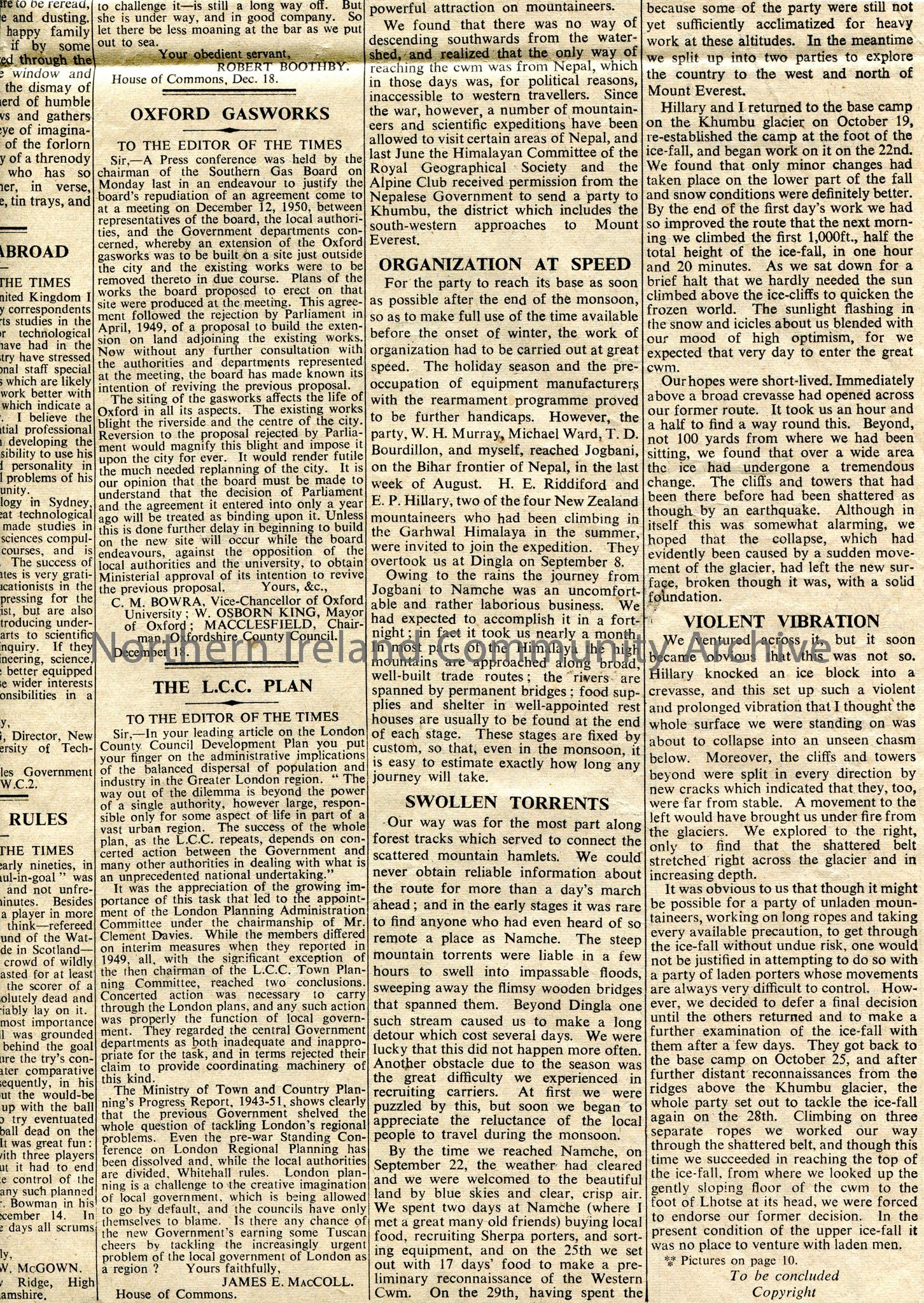 Page from ‘The Times’ newspaper. Dated Thursday 20th December, 1951. Articles re general news articles and Imperial and Foreign news. – img027d