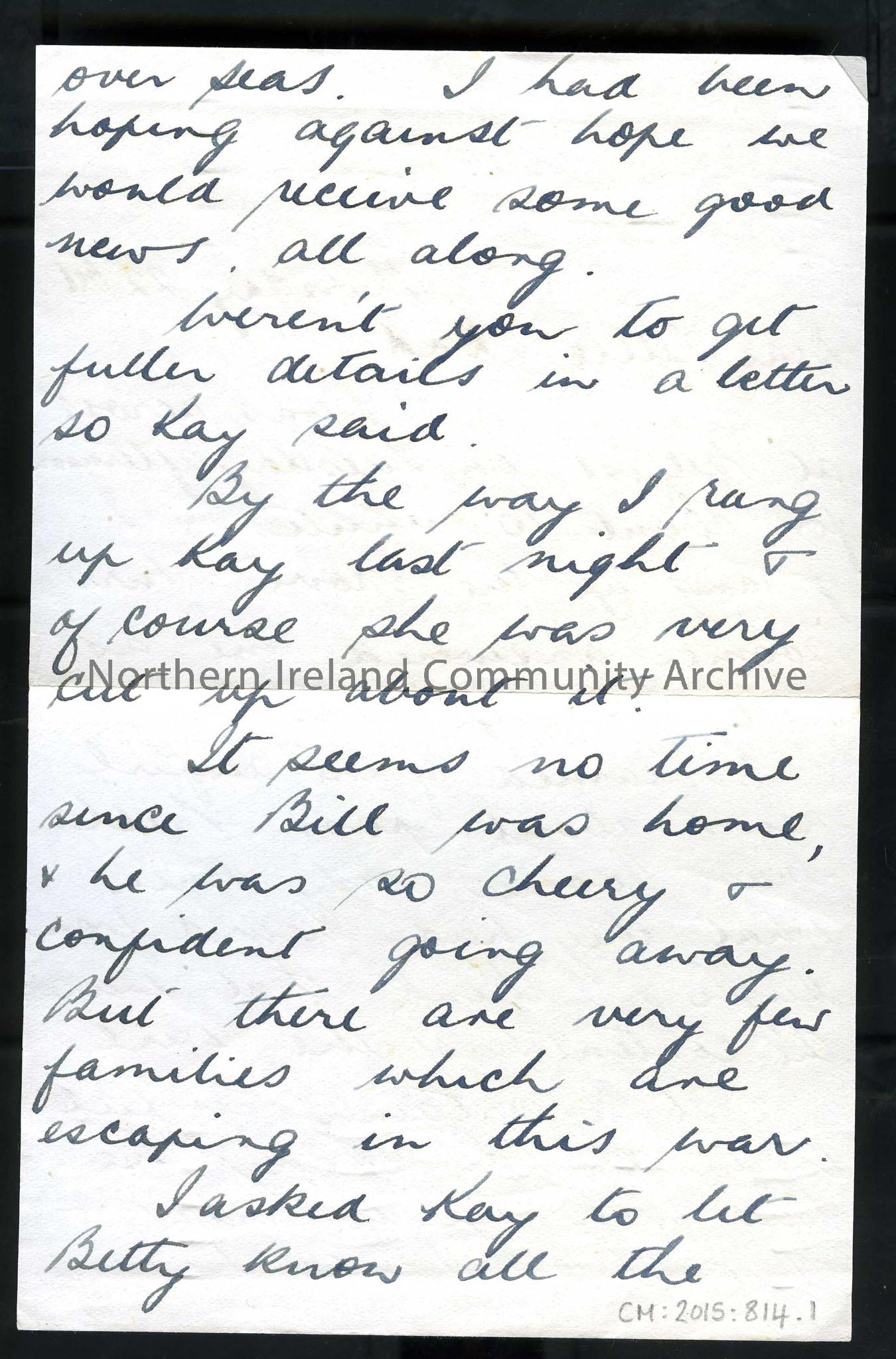 Page one of two – Addressed to Tillie and Dad from Jack (Bill’s brother). Sent from Officers’ Mess, R.A.F. Station, West Freugh, Near Stranraer, Scotl…