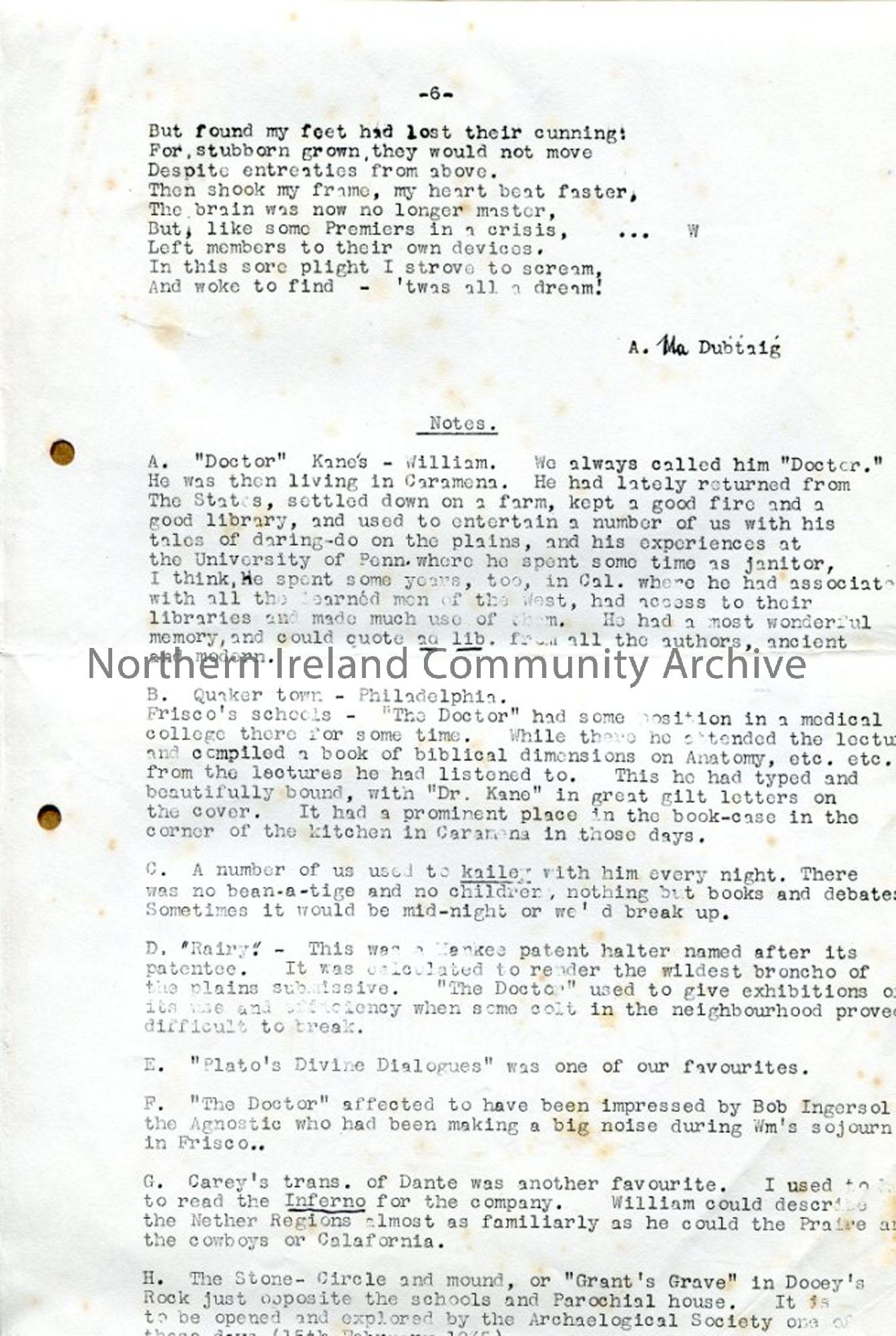 One of 7 pages of typed words to 'A Midnight Meeting' (with Satan), ghost story with fact-based referenced notes on last 2 pages to alphabet reference points throughout. Author Dooey, Andy.