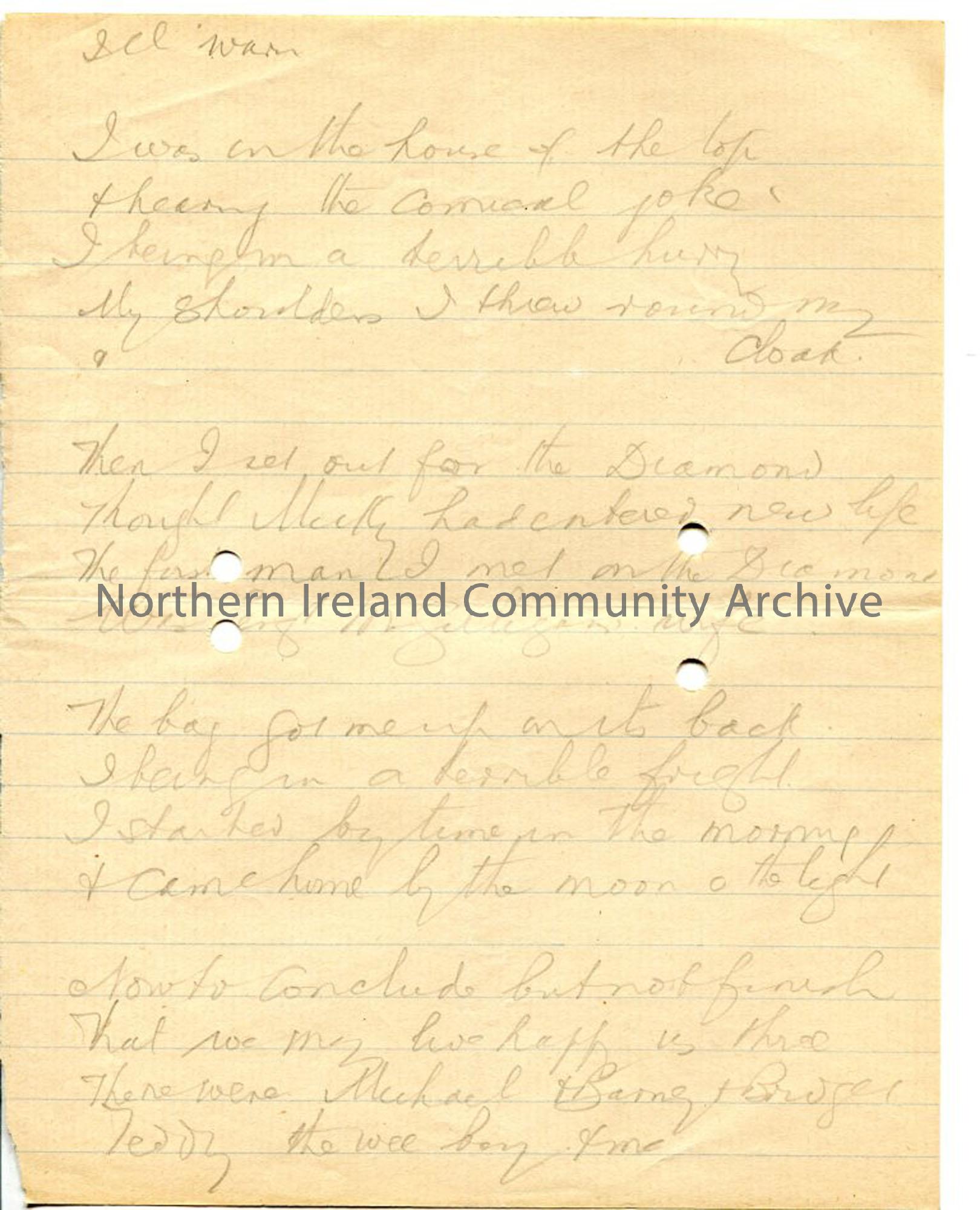 One of 2 pages of handwritten words to 'Contrary Paddy' - comical song