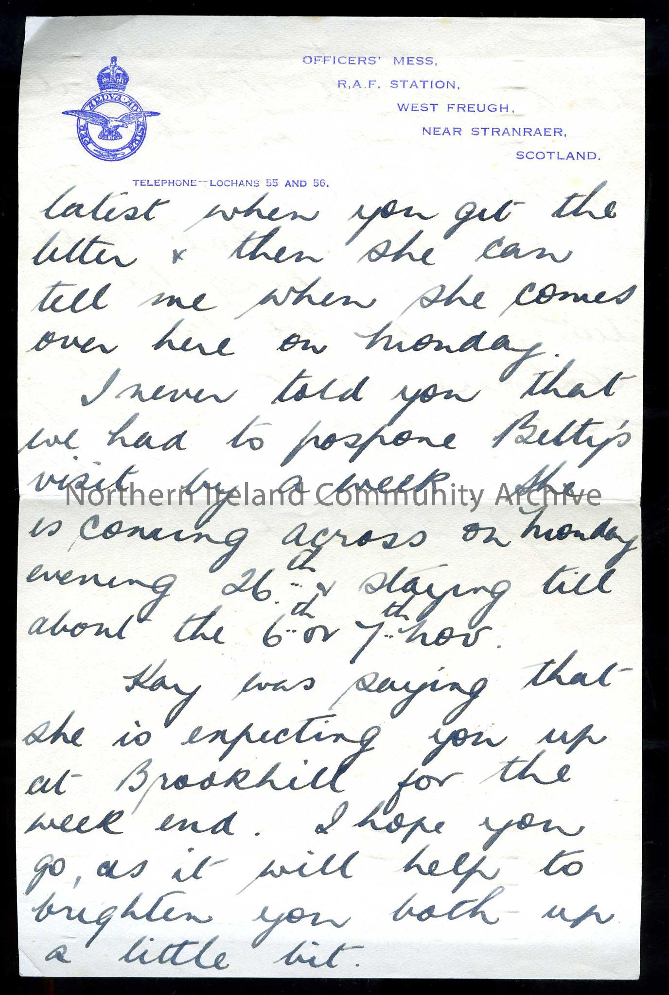 Page two of two – Addressed to Tillie and Dad from Jack (Bill’s brother). Sent from Officers’ Mess, R.A.F. Station, West Freugh, Near Stranraer, Scotl… – Scan814.2