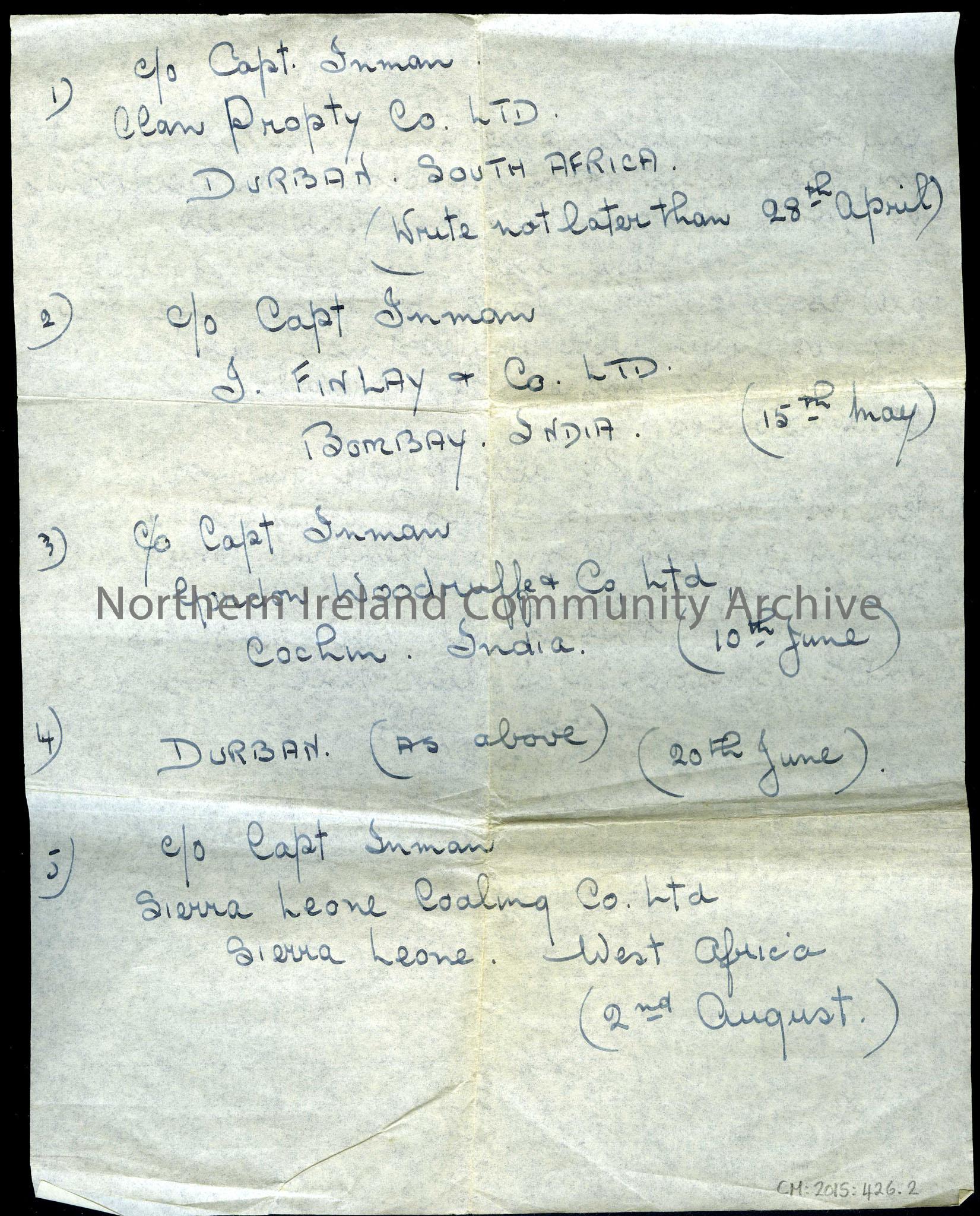 Page two of two page letter from Bill (William McCrory) to Tilly and dad. Sent from Liverpool and dated 21st April 1941. Letting them know that he lea… – Scan426.2b