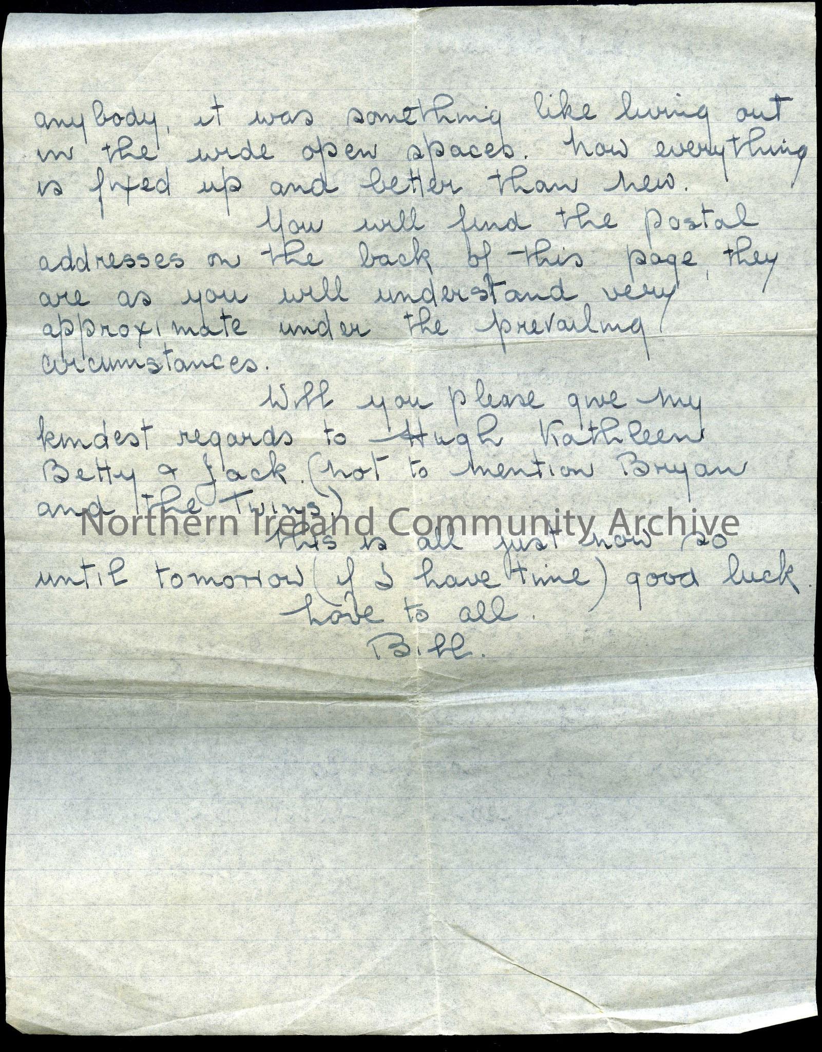 Page two of two page letter from Bill (William McCrory) to Tilly and dad. Sent from Liverpool and dated 21st April 1941. Letting them know that he lea…