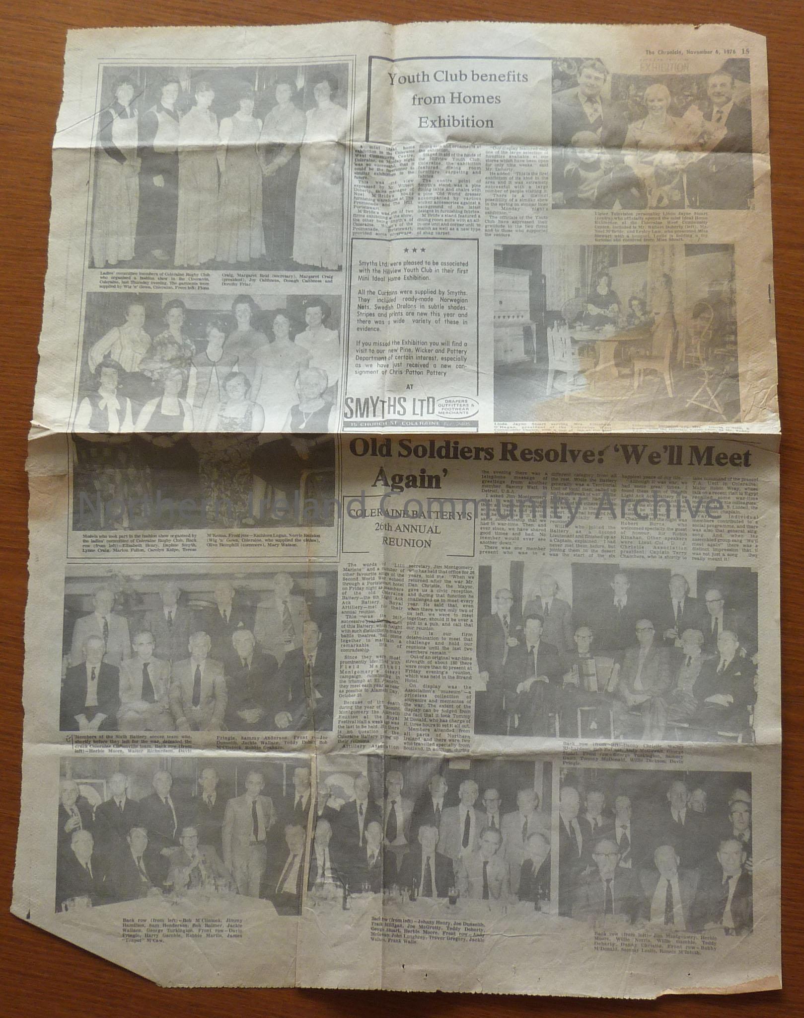 Pages 15 and 16 from The Chronicle, 6th November 1976 featuring story “Old Soldiers Resolve: We’ll Meet Again’ Coleraine battery’s 26th Annual Reunion…