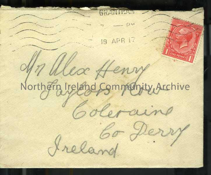 pale addressed envelope with Grantham PO stamp ...